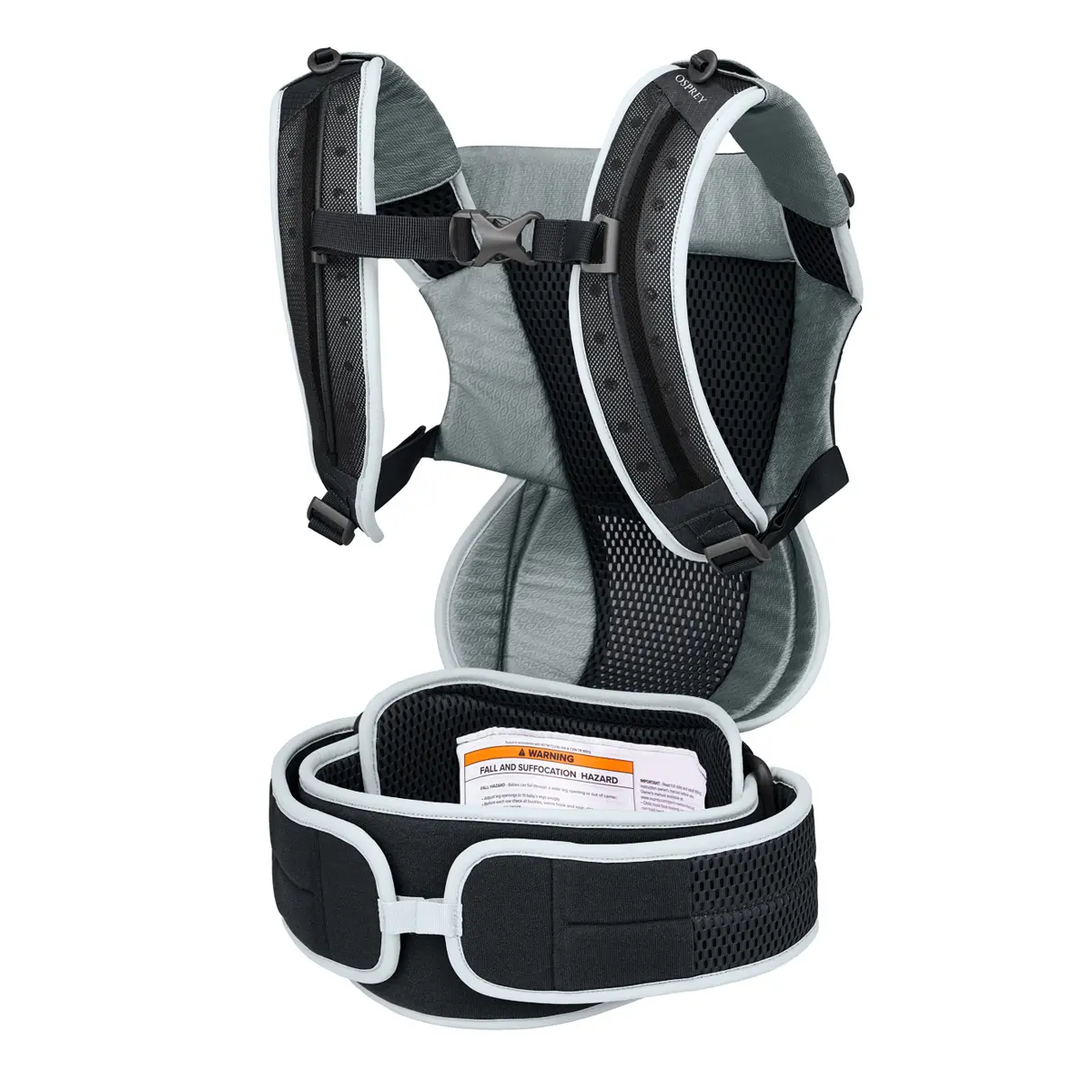 登山パックのようなショルダーベルトや幅広のヒップベルトが、しっかりとホールドして荷重を分散するので、長時間の抱っこでも快適な背負い心地です。
