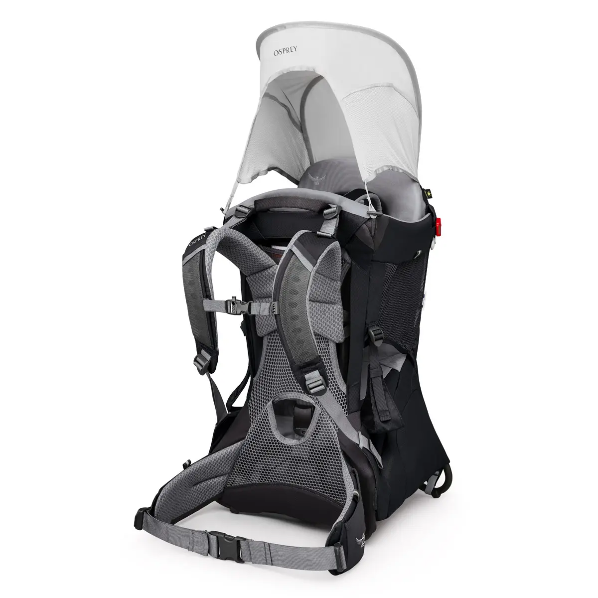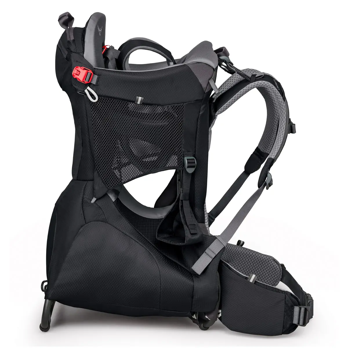 優れた剛性と安定性を発揮するチャイルドキャリア。24リットルの収納スペースは着替えやオムツの収納に便利です。素早く簡単に調整できるショルダーハーネス、ヒップベルト、背面システムは、行動中に背負う人が変わっても手間を取らせず快適に背負うことができます。背面上部から腰部までを軽量なメッシュパネルでカバーするエアスピードサスペンションと呼ばれる背面構造を採用。シームレスな構造は身体に馴染み、背負った時のナチュラルなフィット感や通気性を得られます。