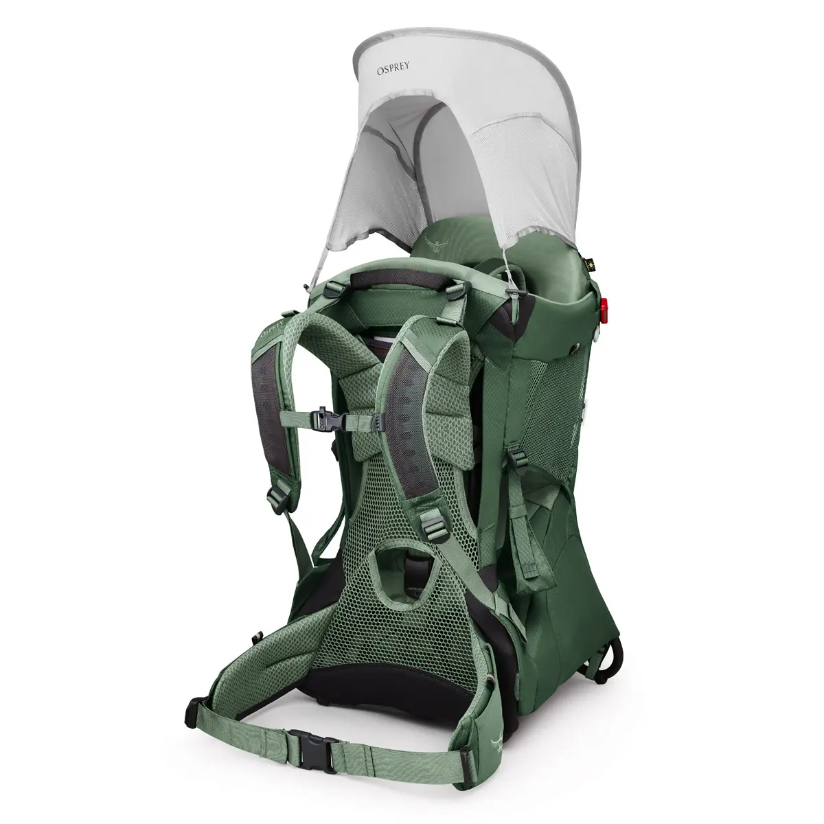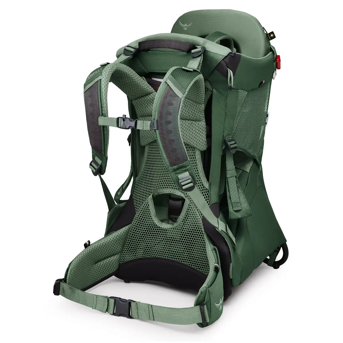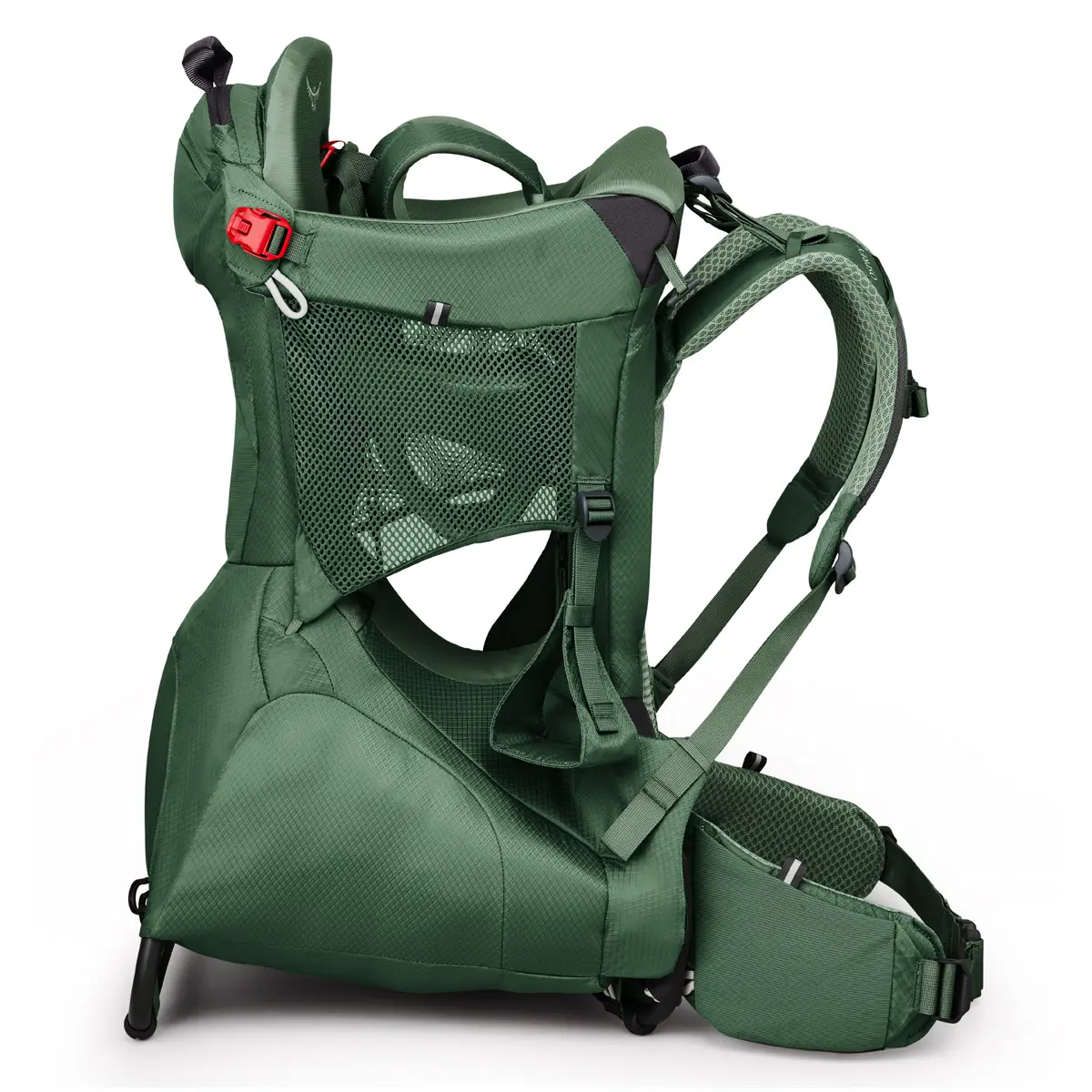 優れた剛性と安定性を発揮するチャイルドキャリア。24リットルの収納スペースは着替えやオムツの収納に便利です。素早く簡単に調整できるショルダーハーネス、ヒップベルト、背面システムは、行動中に背負う人が変わっても手間を取らせず快適に背負うことができます。背面上部から腰部までを軽量なメッシュパネルでカバーするエアスピードサスペンションと呼ばれる背面構造を採用。シームレスな構造は身体に馴染み、背負った時のナチュラルなフィット感や通気性を得られます。