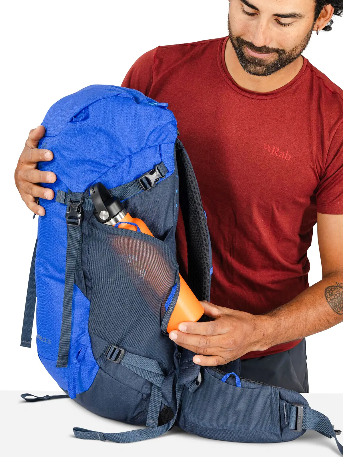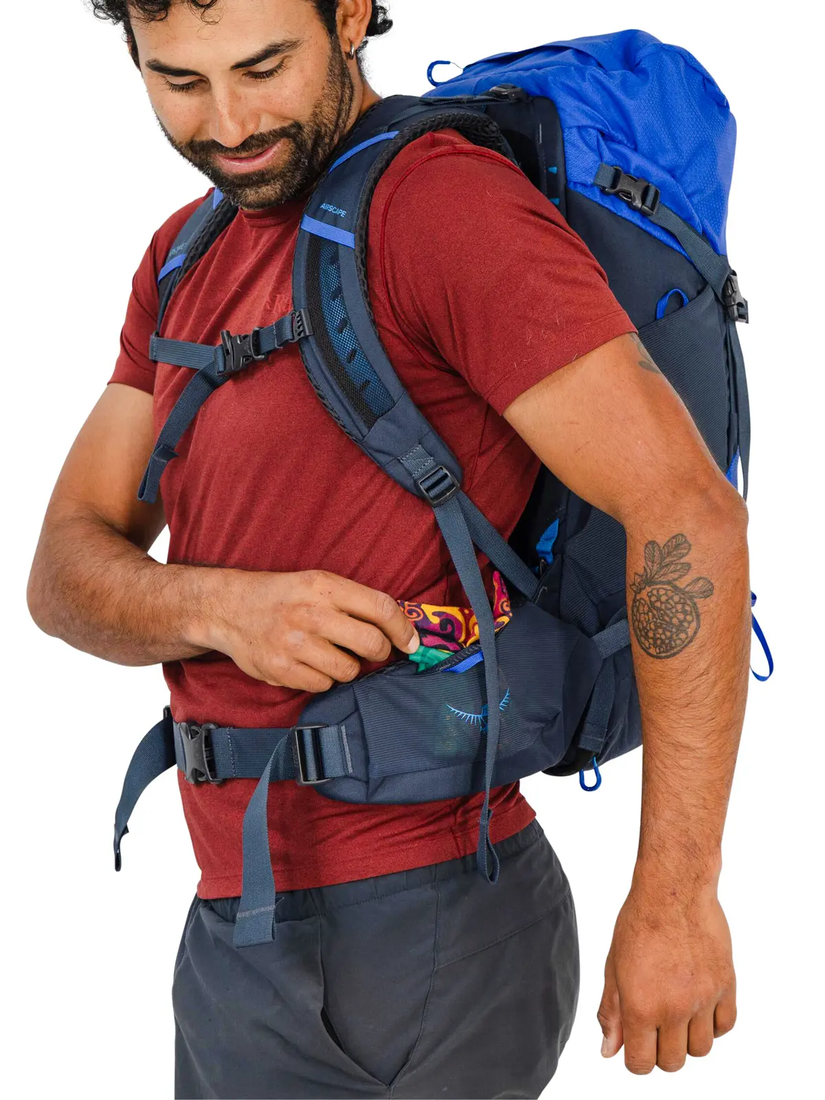 クッション性が高く身体にぴったりとフィットするエアスケープバックパネルが、快適でバランスの良い背負い心地を実現。背面長は調整が可能で、正確なフィット感を提供します。メイン荷室の上部にはトップリッドを備え、フロントの収納ポケットとヒップベルトポケットに必需品を収納できます。