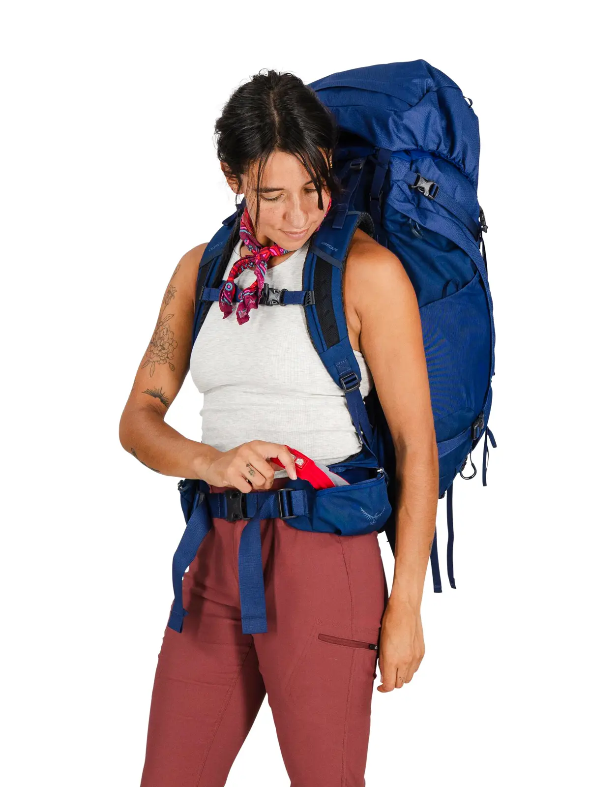 クッション性が高く身体にぴったりとフィットするエアスケープバックパネルが、快適でバランスの良い背負い心地を実現。背面長は調整が可能で、正確なフィット感を提供します。メイン荷室の上部にはトップリッドを備え、フロントの収納ポケットとヒップベルトポケットに必需品を収納できます。