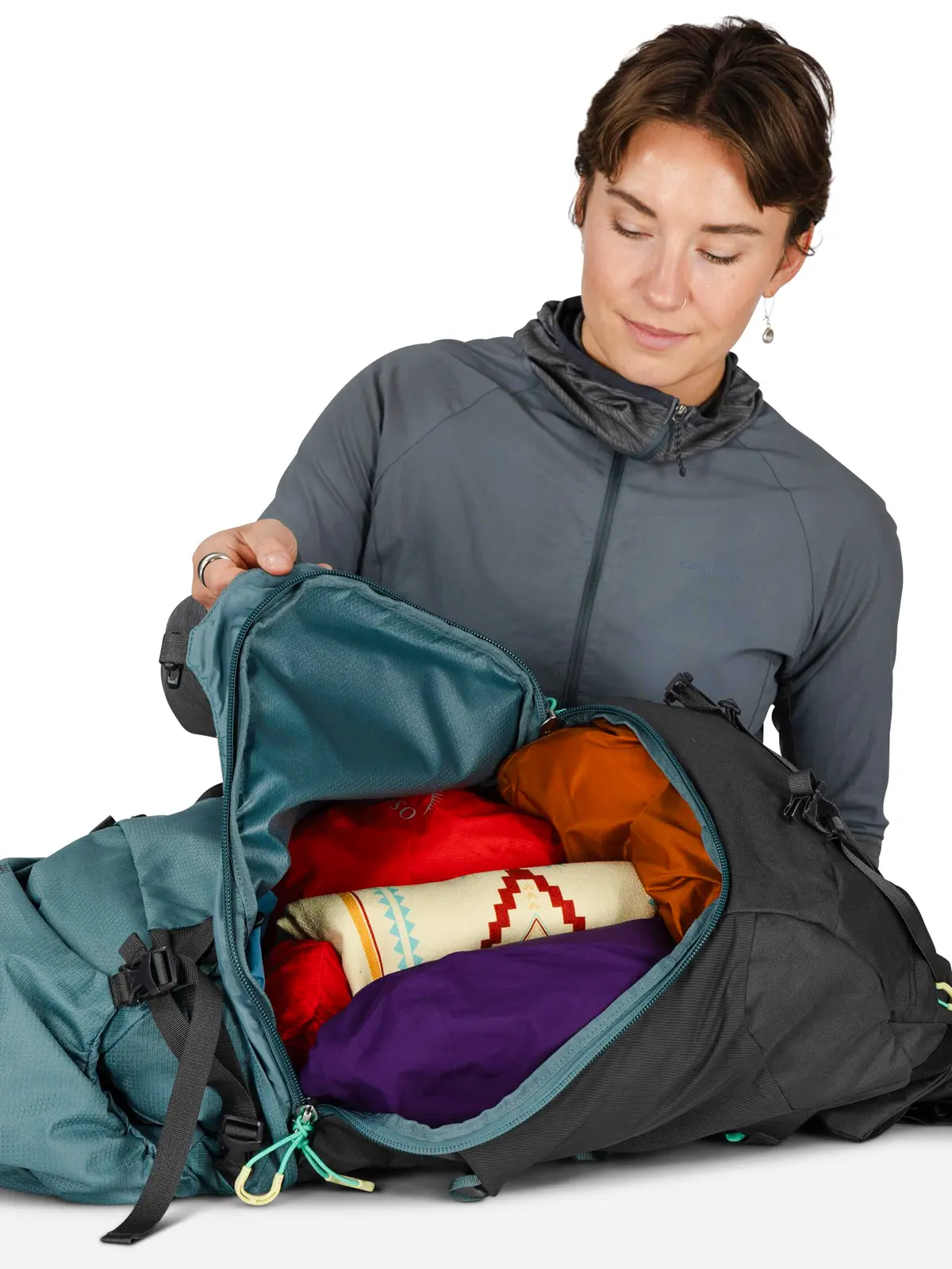 クッション性が高く身体にぴったりとフィットするエアスケープバックパネルが、快適でバランスの良い背負い心地を実現。背面長は調整が可能で、正確なフィット感を提供します。メイン荷室の上部にはトップリッドを備え、フロントの収納ポケットとヒップベルトポケットに必需品を収納できます。