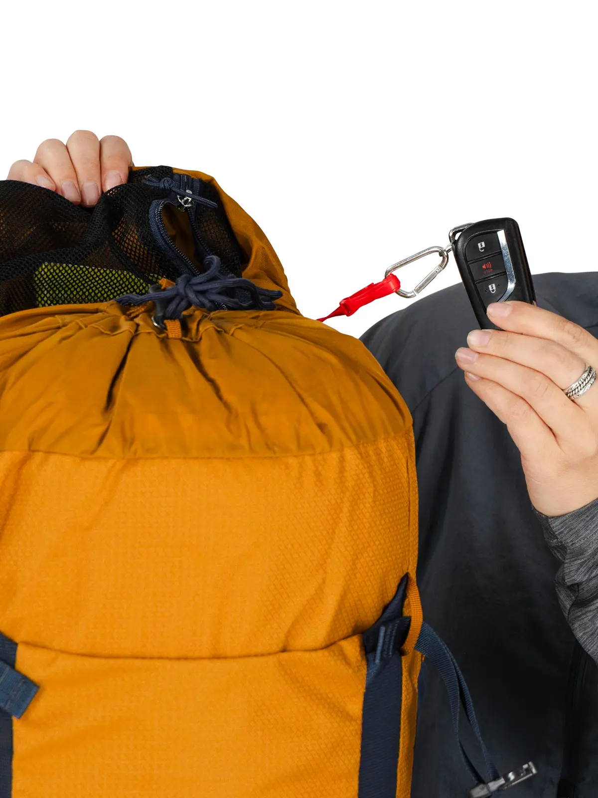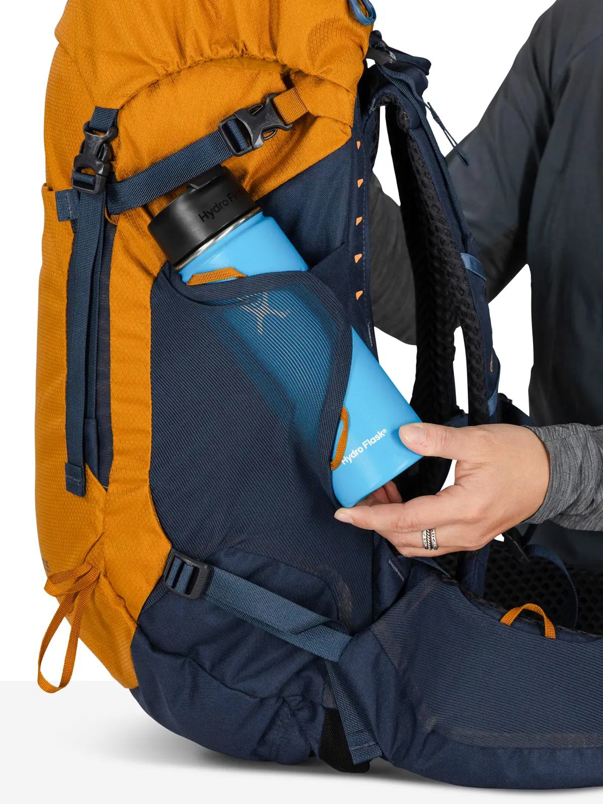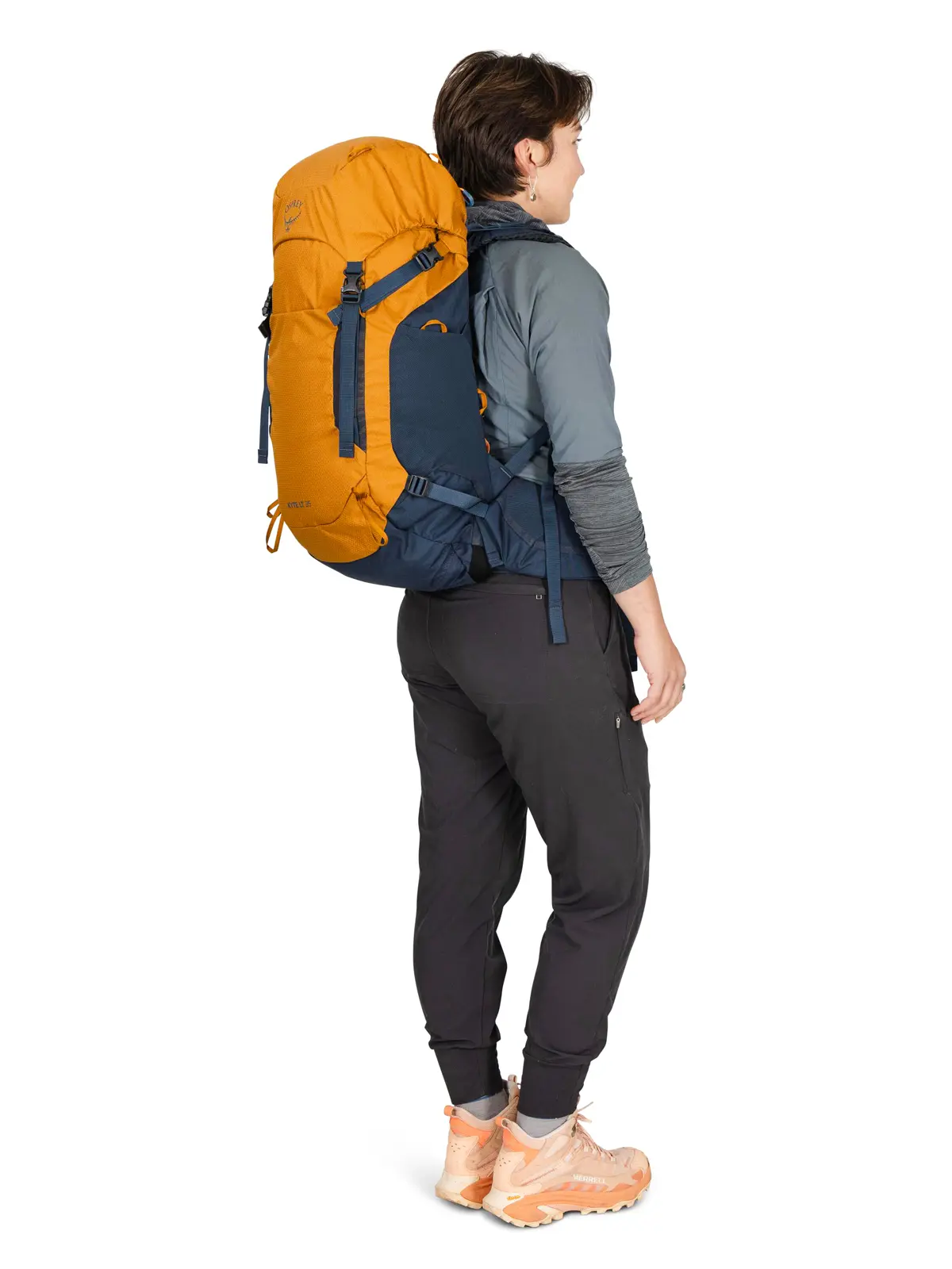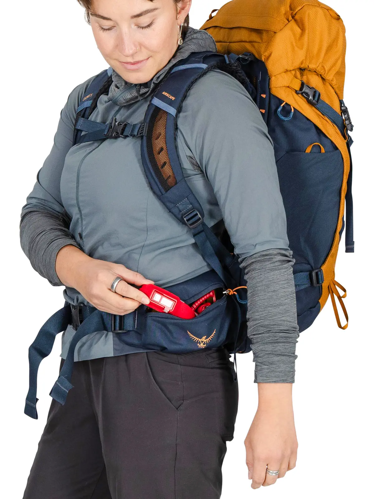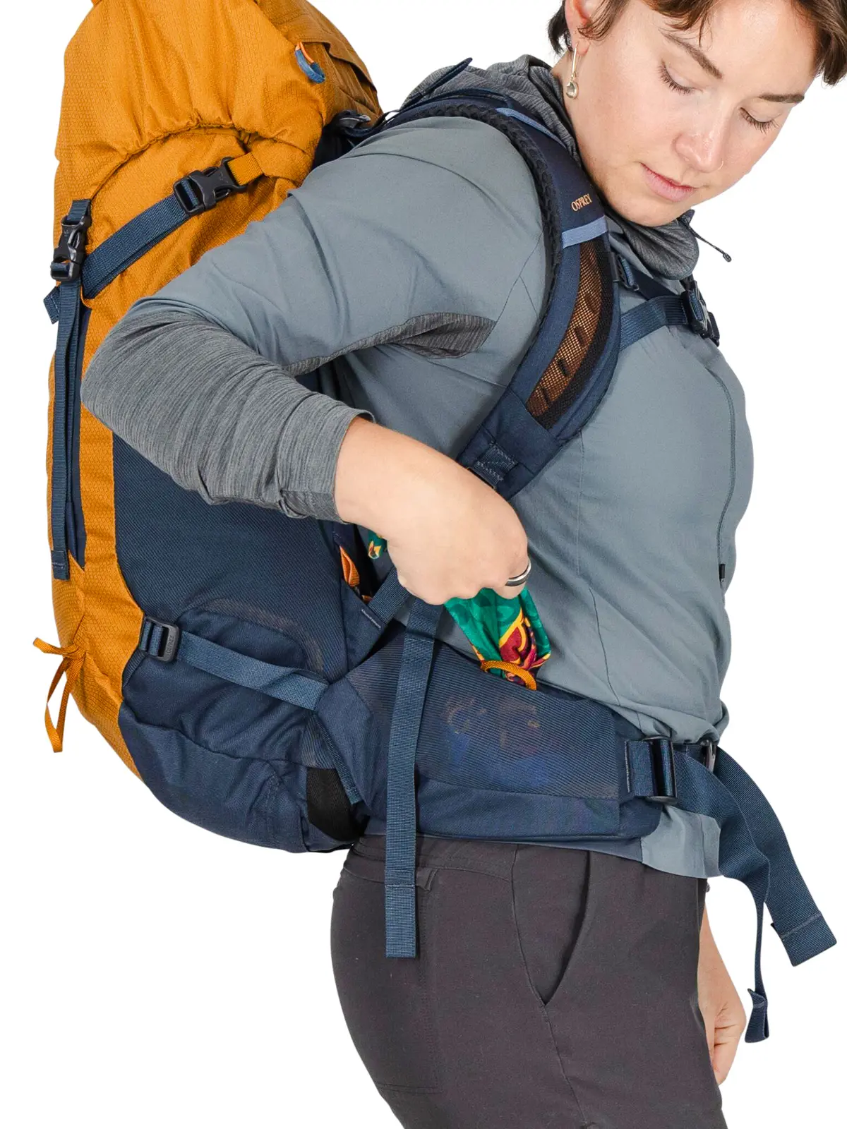 クッション性が高く身体にぴったりとフィットするエアスケープバックパネルが、快適でバランスの良い背負い心地を実現。背面長は調整が可能で、正確なフィット感を提供します。メイン荷室の上部にはトップリッドを備え、フロントの収納ポケットとヒップベルトポケットに必需品を収納できます。
