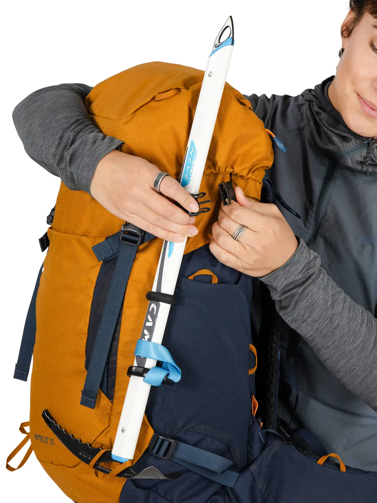 - アイスアックスやトレッキングポールを装着できるツールキャプチャーと上部サイドコンプレッションストラップ