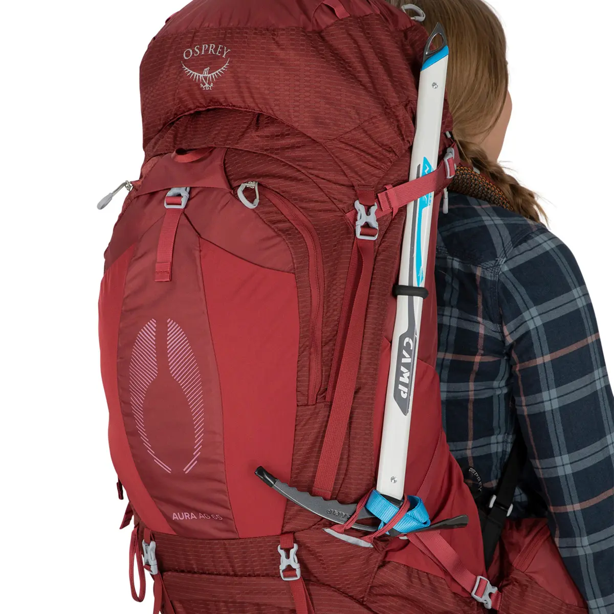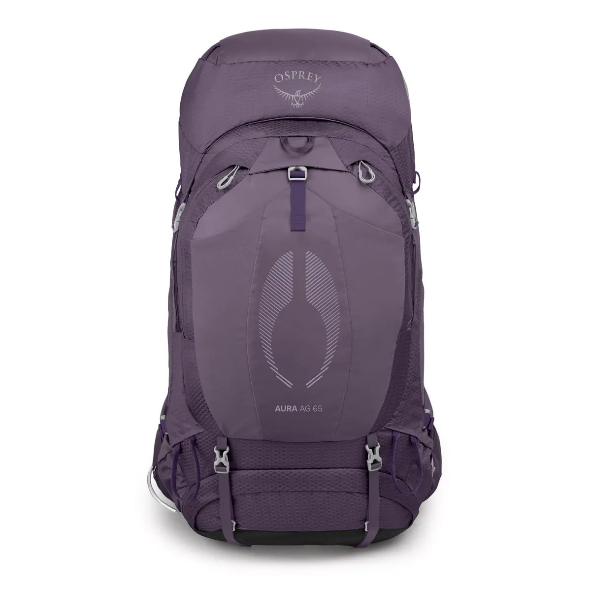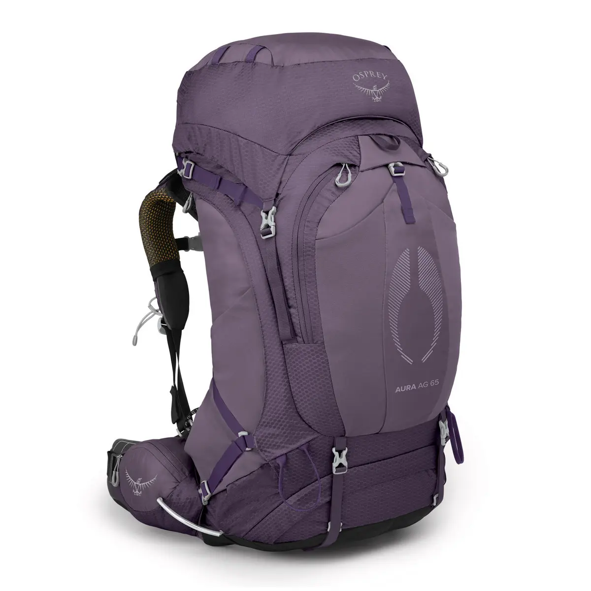 オーラは立体的な背面メッシュが抜群の通気性とフィット感を生み出す女性用バックパック。65はテント泊2~3日の登山やバックパッキングに適したモデル。