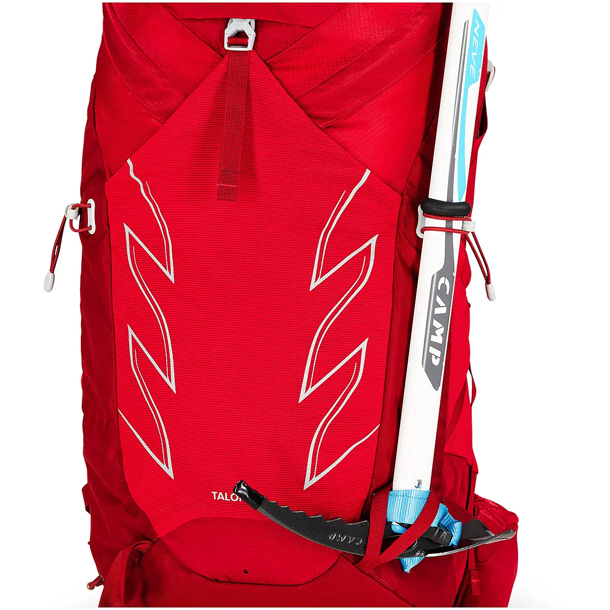 - 収納可能なアイスツールループとバンジーストラップ