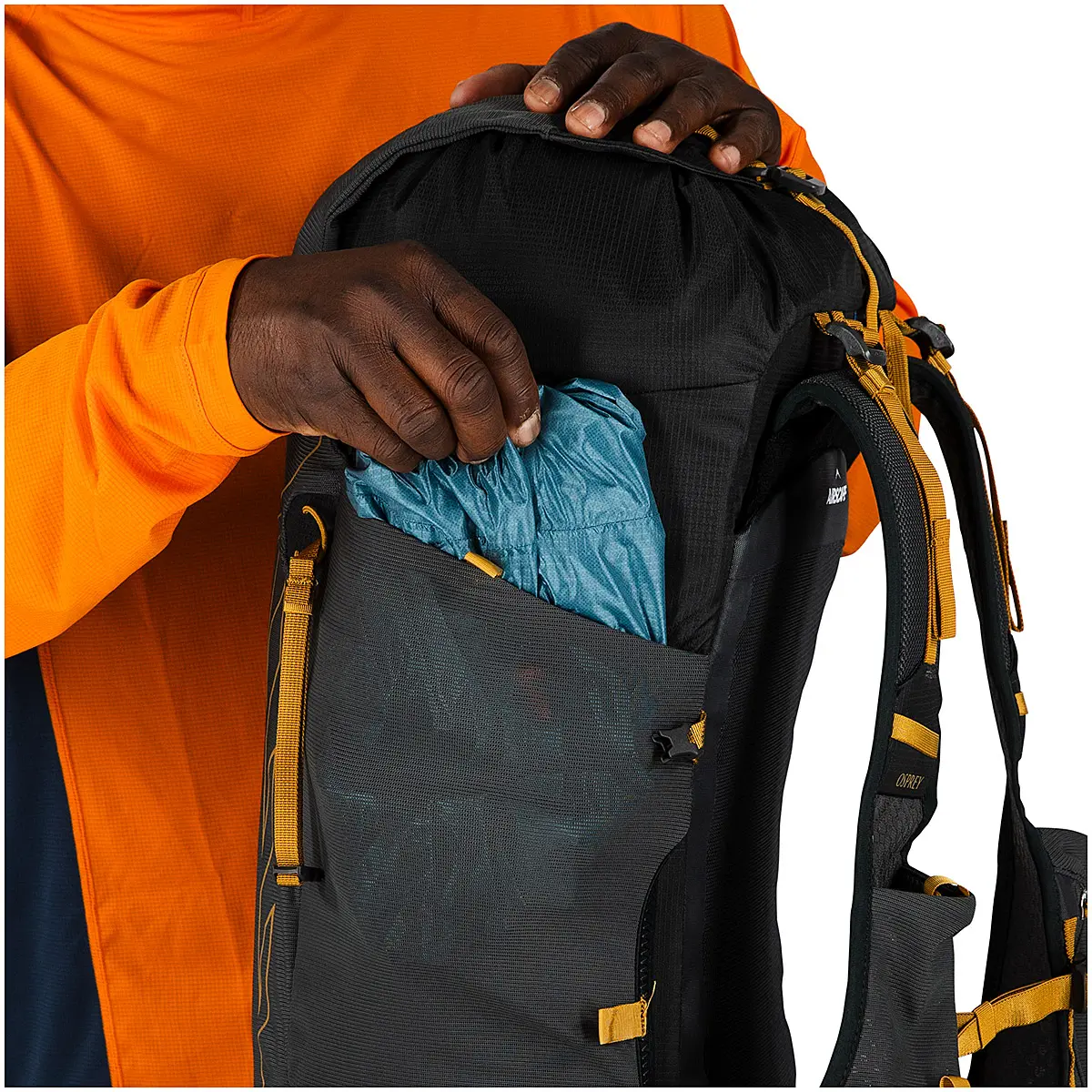 ヘルメットやアイスアックス、トレッキングポール、スリーピングマットなどが収納でき、ファストハイキングはもちろん長距離のトレイルランニングや自転車・スキーなど、スピードを重視する様々なアクティビティに対応します。