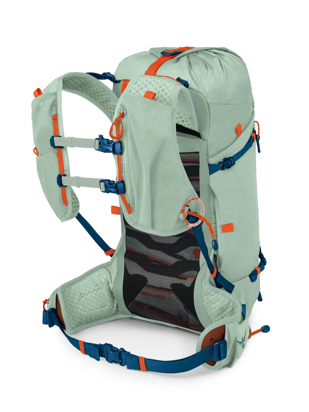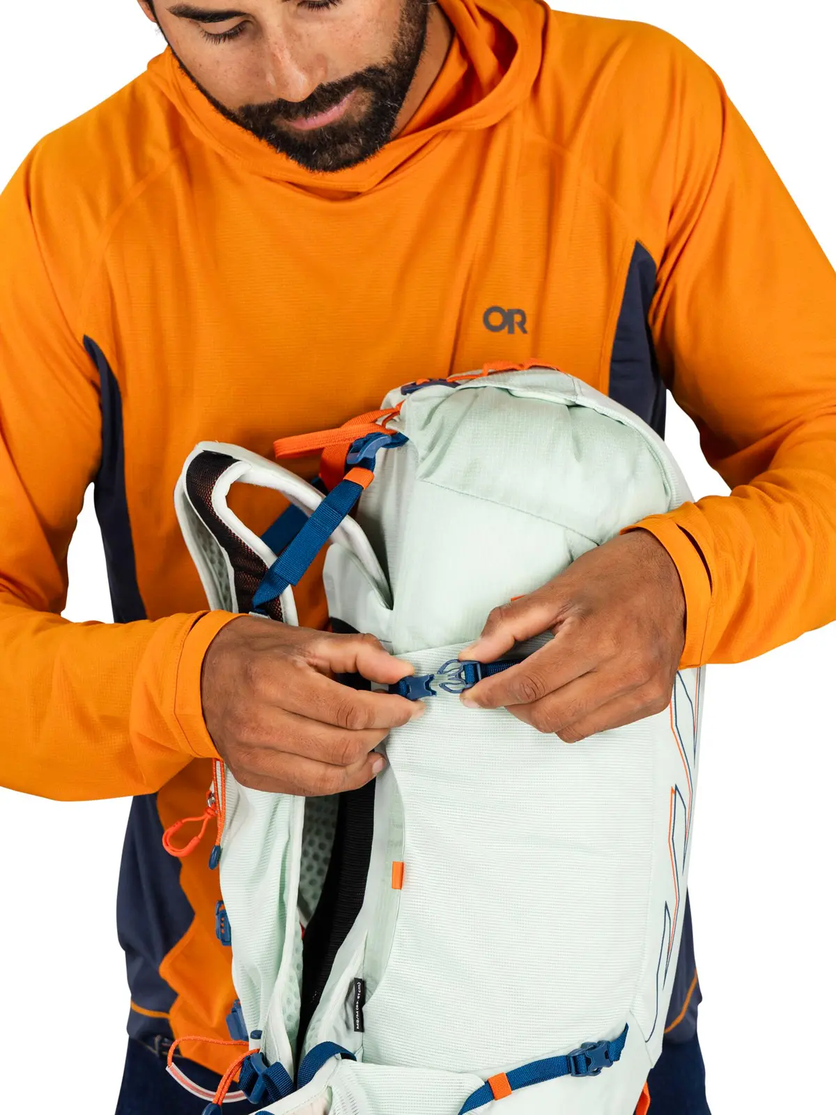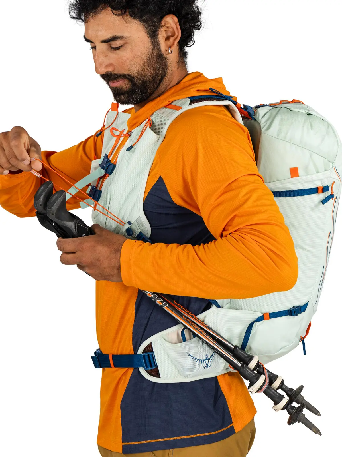 ヘルメットやアイスアックス、トレッキングポールなどが収納でき、ファストハイキングはもちろん長距離のトレイルランニングや自転車・スキーなど、スピードを重視する様々なアクティビティに対応します。