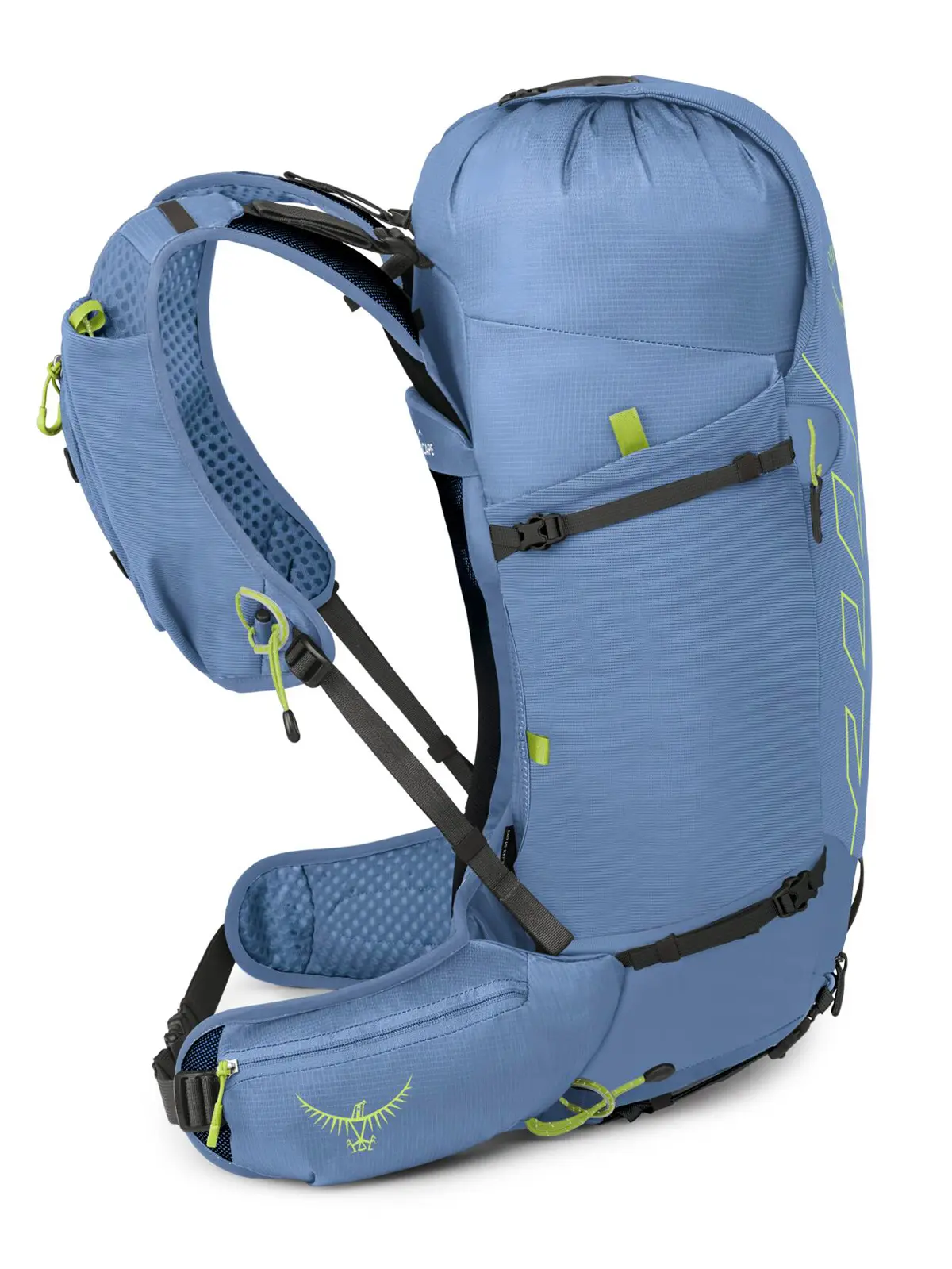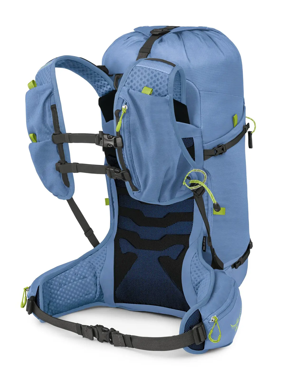 ヘルメットやアイスアックス、トレッキングポール、スリーピングマットなどが収納でき、ファストハイキングはもちろん長距離のトレイルランニングや自転車・スキーなど、スピードを重視する様々なアクティビティに対応します。