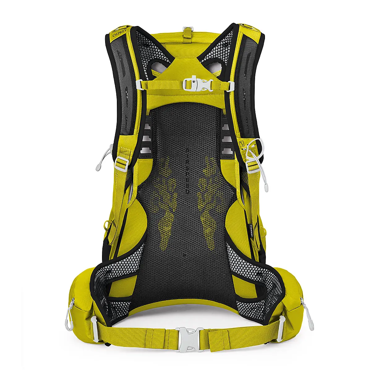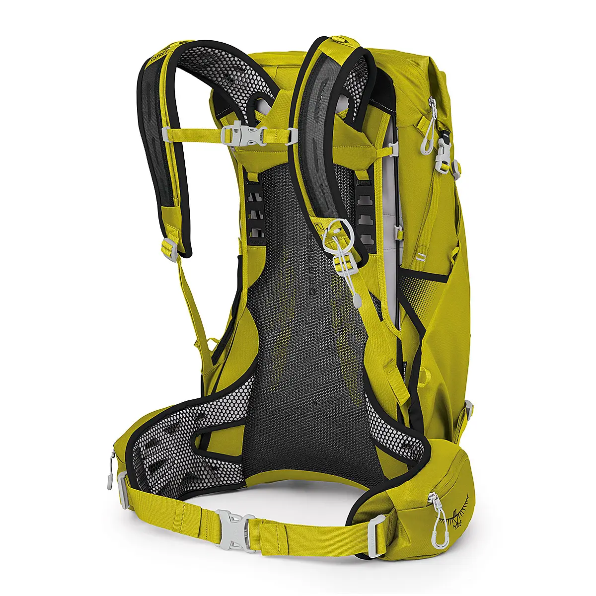 背面には抜群の通気性と背負いやすさを誇るエアスピードサスペンションを採用。身体とバックパックの間にメッシュパネルで空間を設けることで、背中に空気の通り道をつくり、高温多湿な環境や悪天候のハイキングでも快適です。ラダーシステムによる簡単な背面調整とロードリフターが、背面長や荷重に合わせたフィットの微調整を可能にし、高いフィット感と快適性を実現しています。