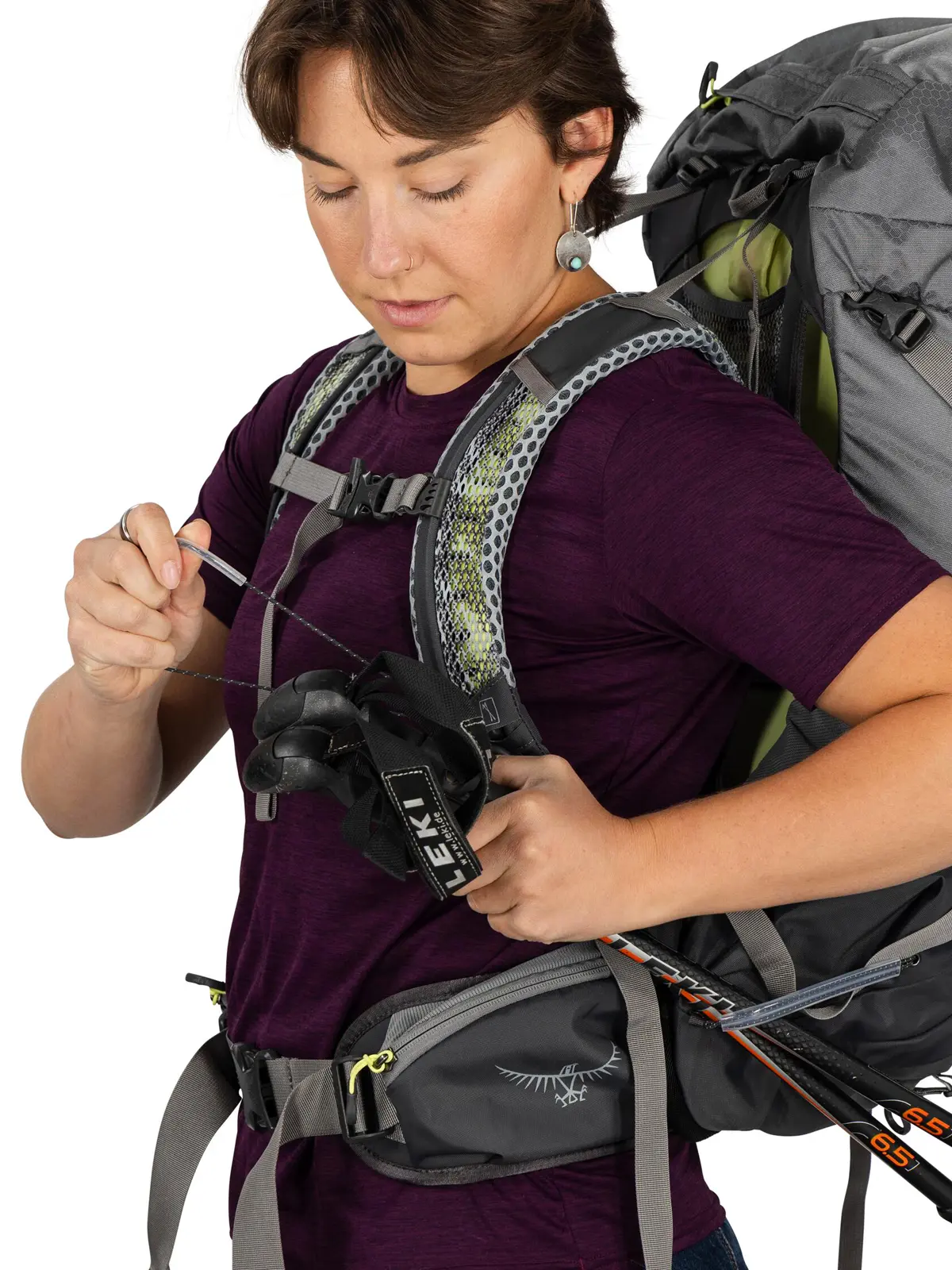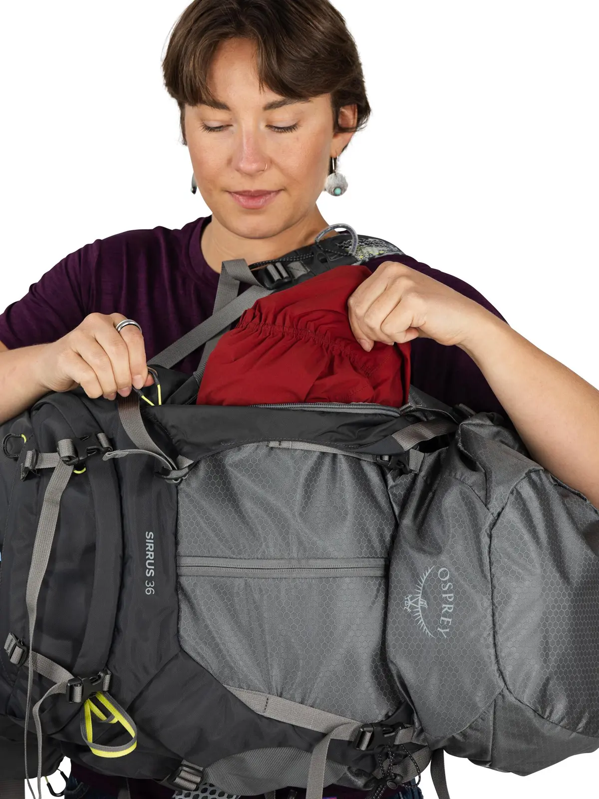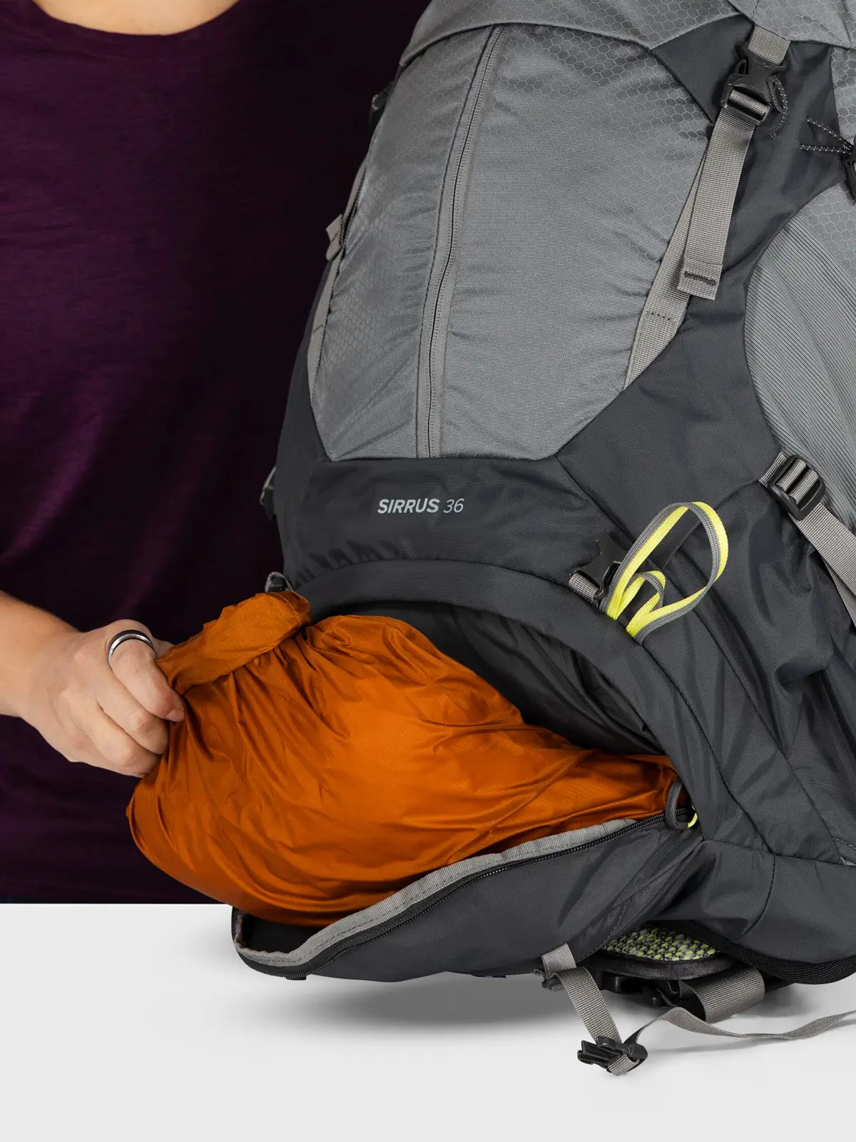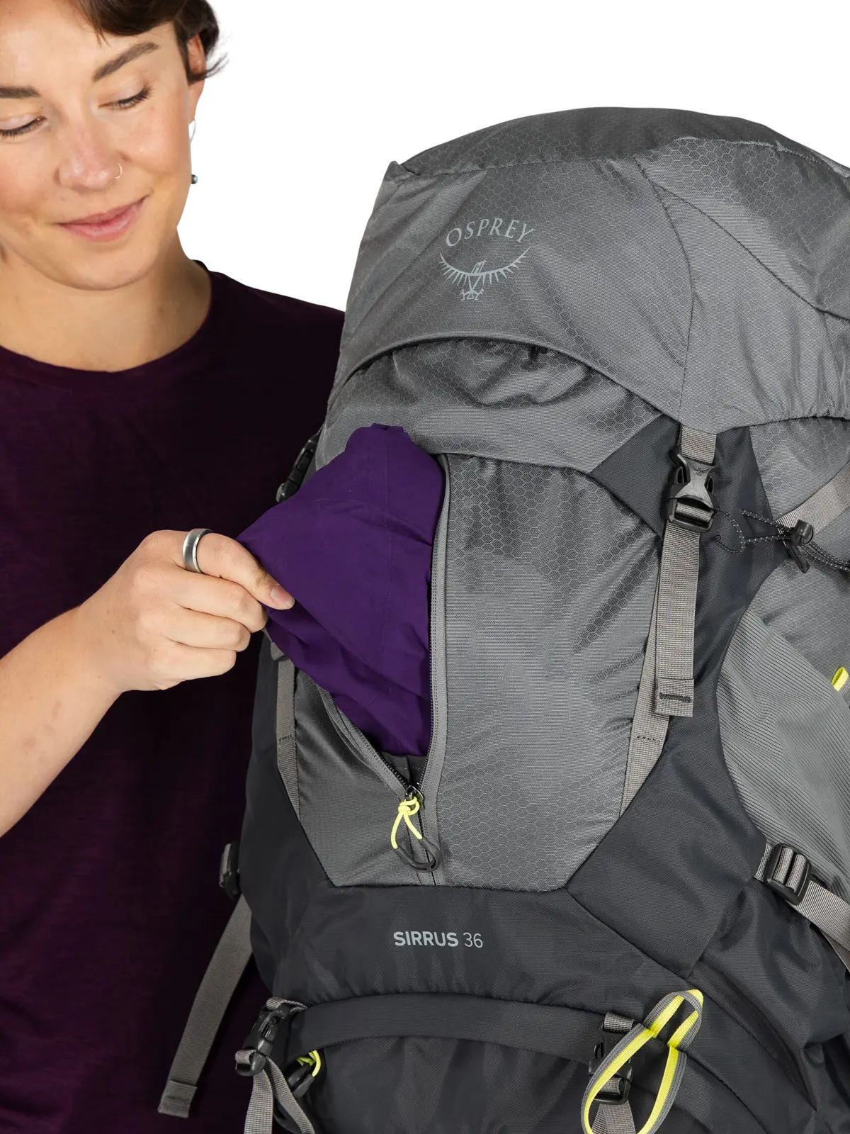 ムレやすい背面を風が抜ける造りで、暑い季節に特に快適なハイキングパック。女性の体格に合わせて調整可能で、余裕のある収納力を備え、日帰りハイクから1泊程度の山行まで対応します。下部コンパートメントは仕切って2気室にできます。考え抜かれたポケット配置で小物も整理しやすく、必要に応じて付属のレインカバーを素早く取り付けできます。
