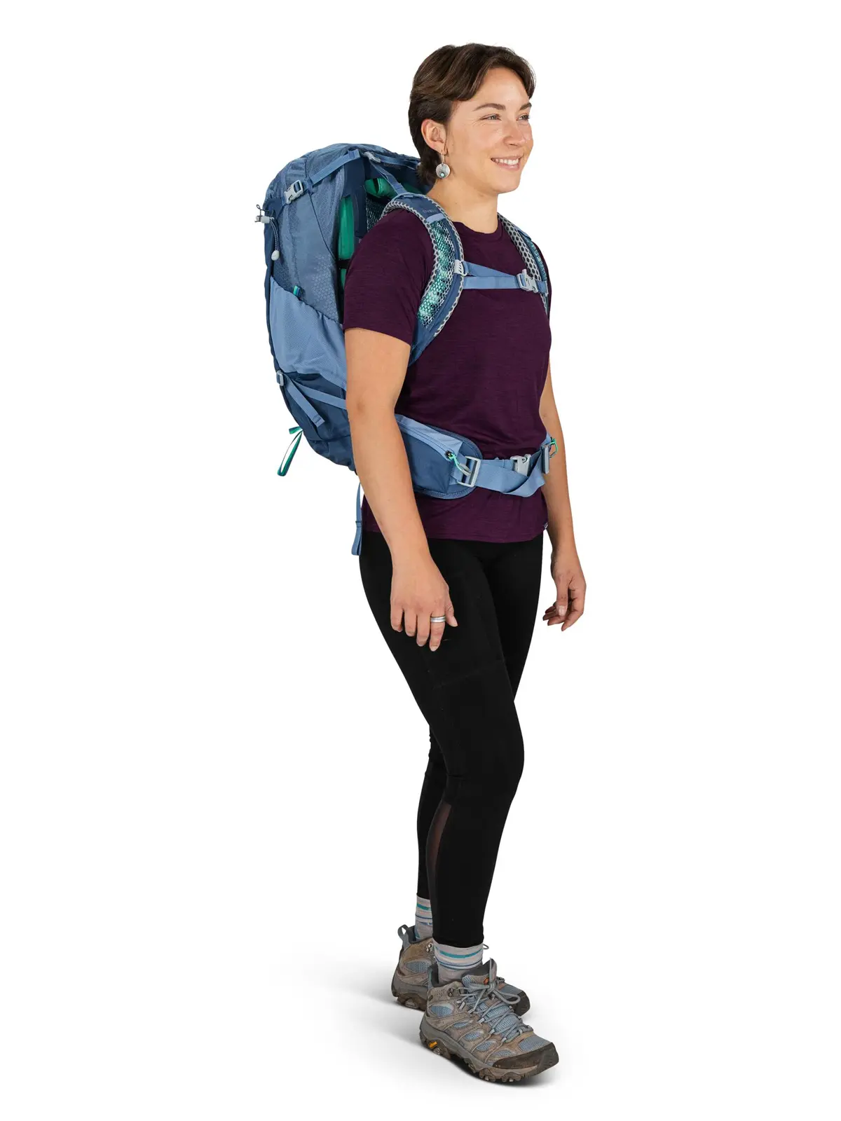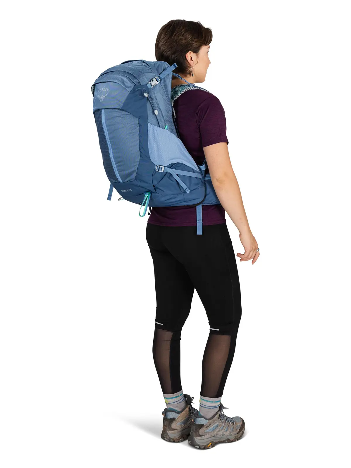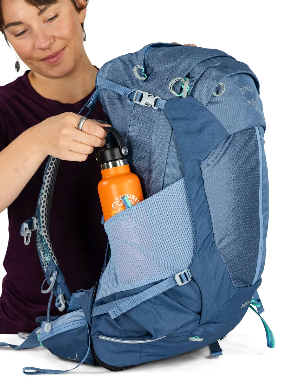 ムレやすい背面を風が抜ける造りで、暑い季節に特に快適なハイキングパック。こだわりのデイハイカー向けに設計され、ダブルジッパーで荷物に素早くアクセスできます。またフロント、サイド、ヒップベルトの各種ポケットに荷物を効率よく整理できます。必要に応じて付属のレインカバーを素早く取り付けできます。