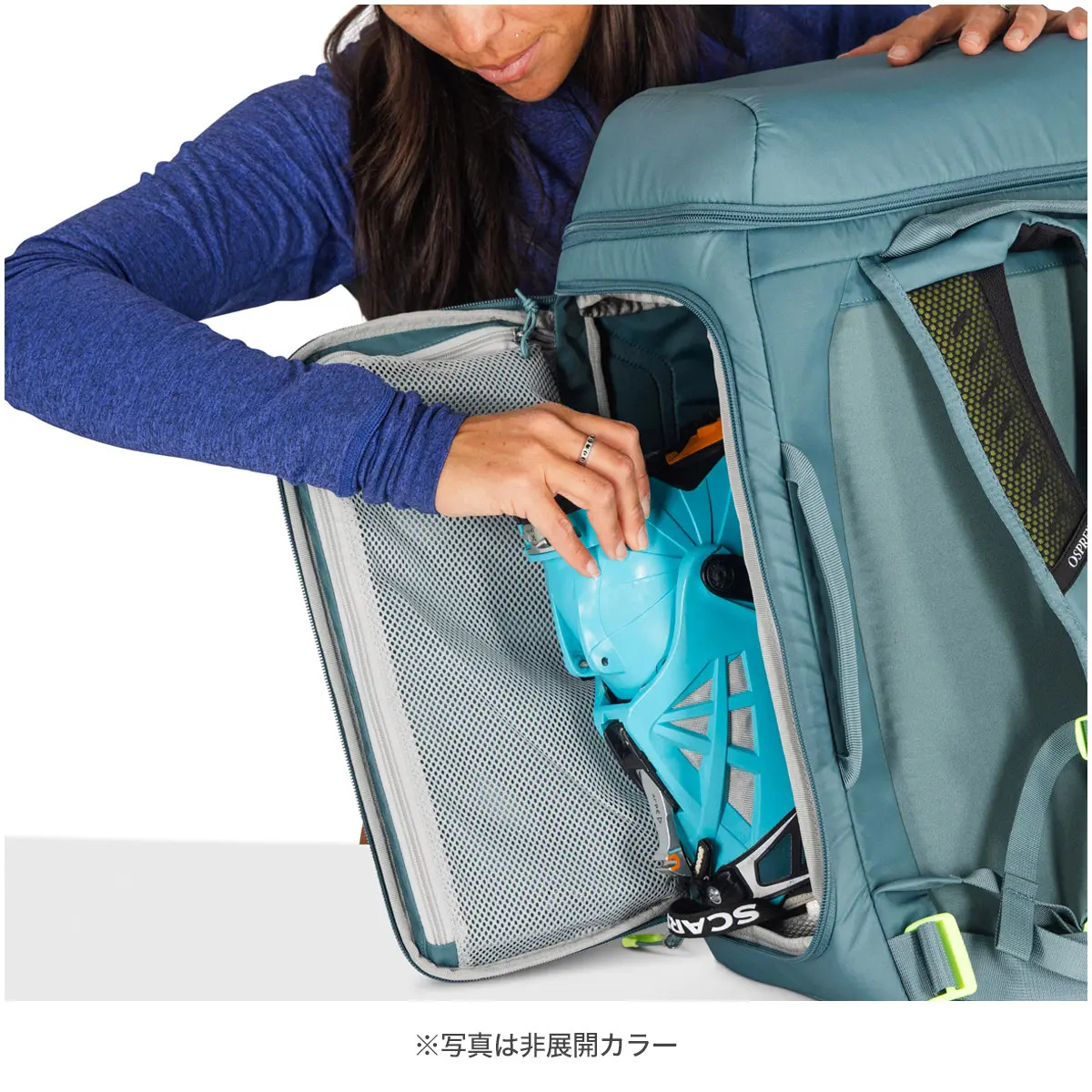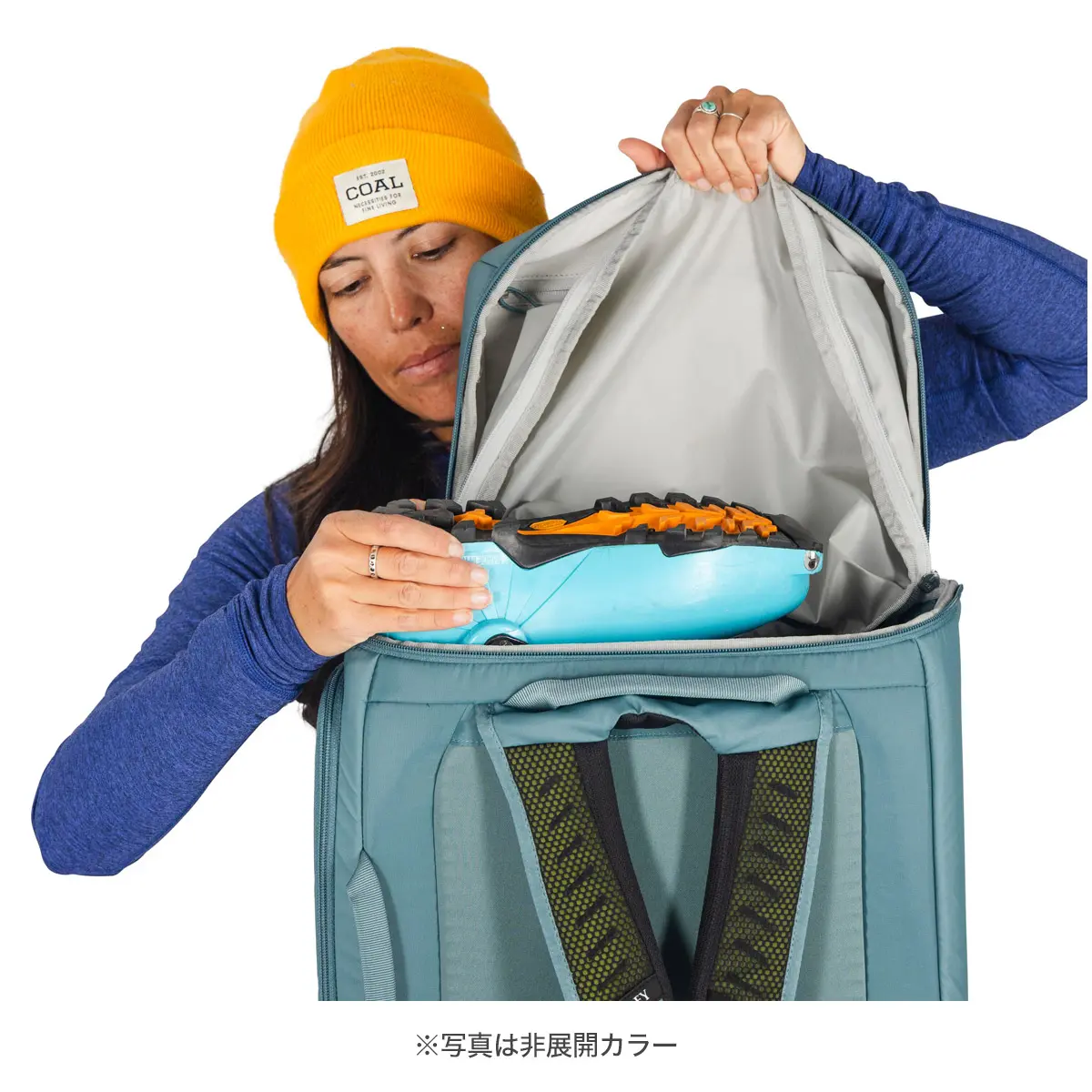 スキースノーボードのブーツやその他のギアが収納できる、機内持ち込みサイズのブーツパック。メインの生地には耐久性と耐水性に優れたナノタフを使用し、パック全体に施されたパッドで大切なギアを保護します。ブーツの脱ぎ履きに便利なシューズチェンジマットを装備しています。