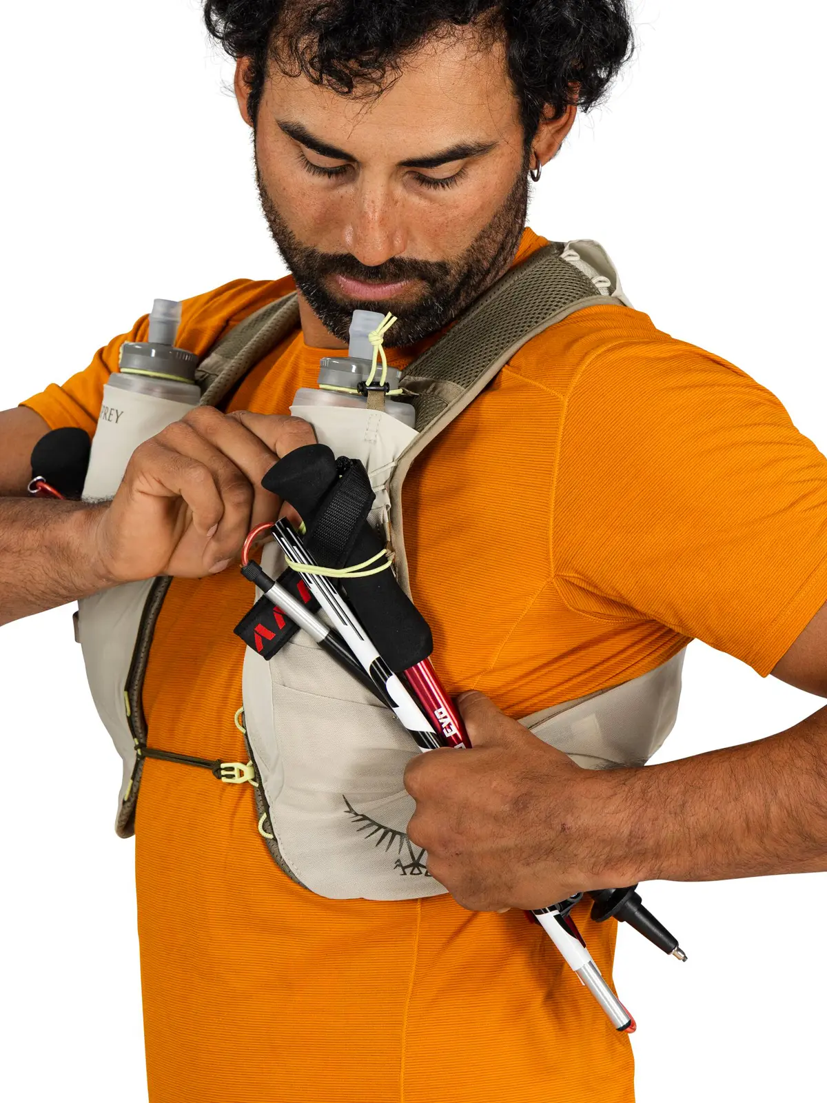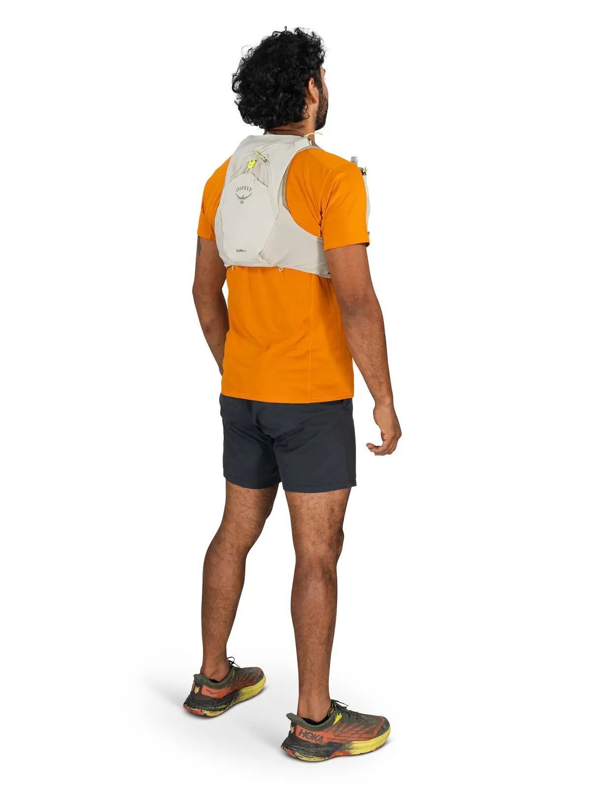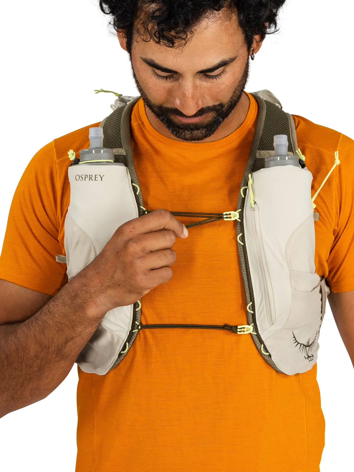 長時間のトレイルランにも対応する多用途ランニングベスト。走行中も身体にしっかりフィットする360度ストレッチメッシュを採用。男性の体型にフィットする設計、優れた収納力、ブレのない安定性が特長です。ハイドローリック500mlソフトフラスク2本が付属し、水分・エネルギー補給をスムーズに行えます。