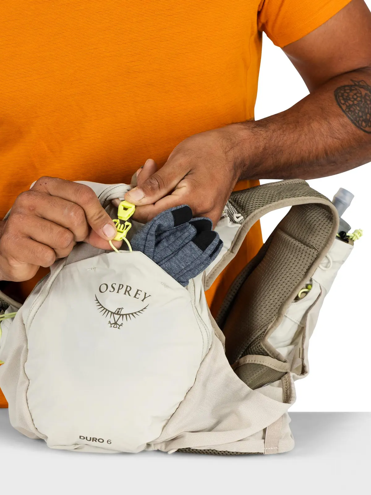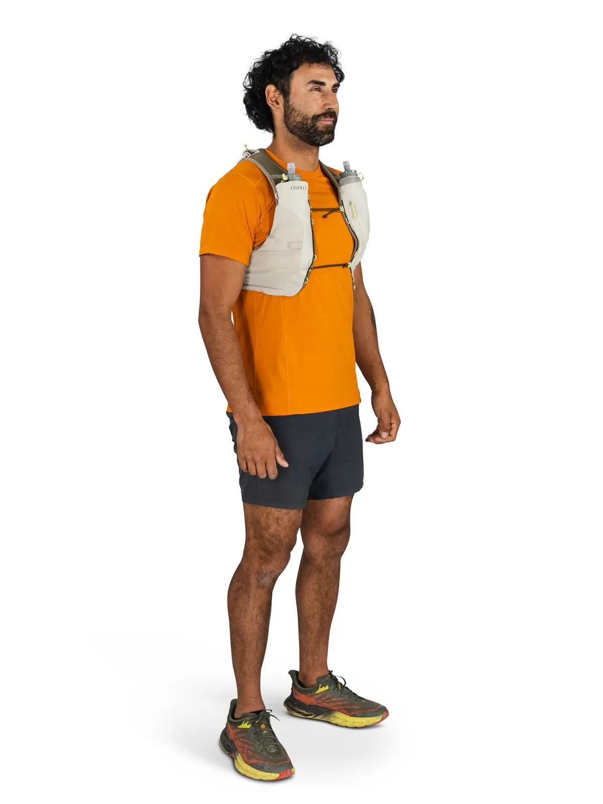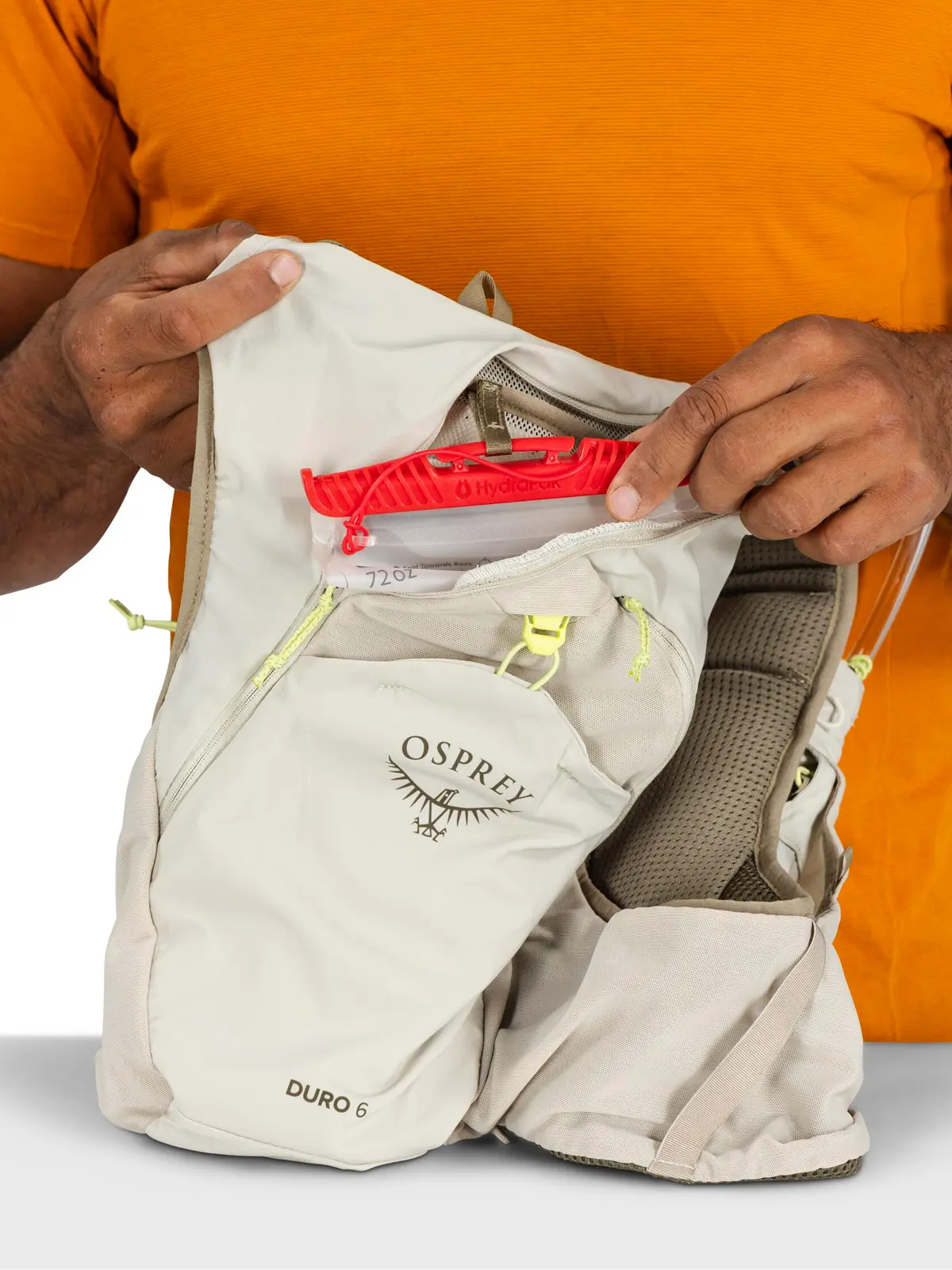 長時間のトレイルランにも対応する多用途ランニングベスト。走行中も身体にしっかりフィットする360度ストレッチメッシュを採用。男性の体型にフィットする設計、優れた収納力、ブレのない安定性が特長です。ハイドローリック500mlソフトフラスク2本が付属し、水分・エネルギー補給をスムーズに行えます。