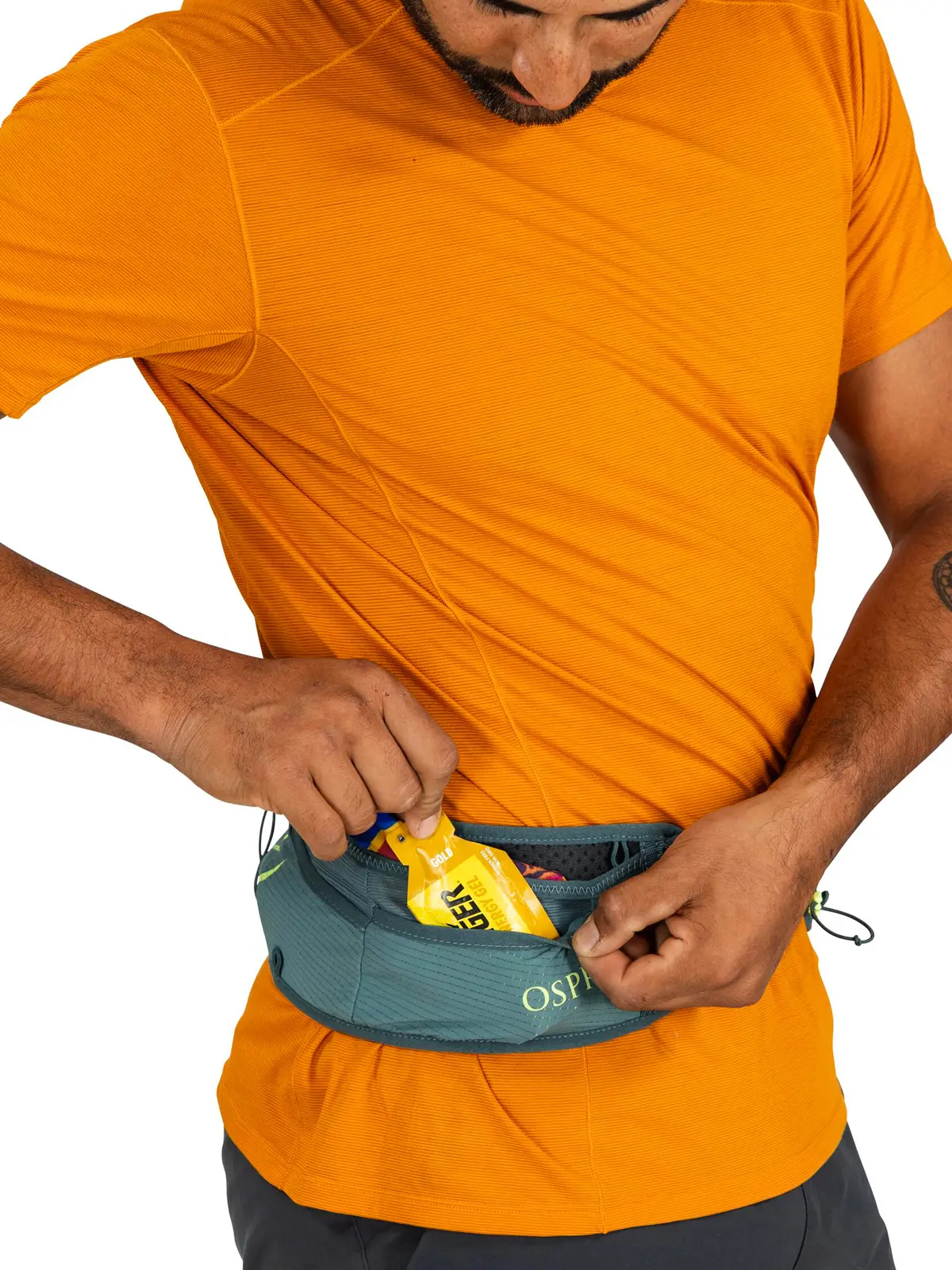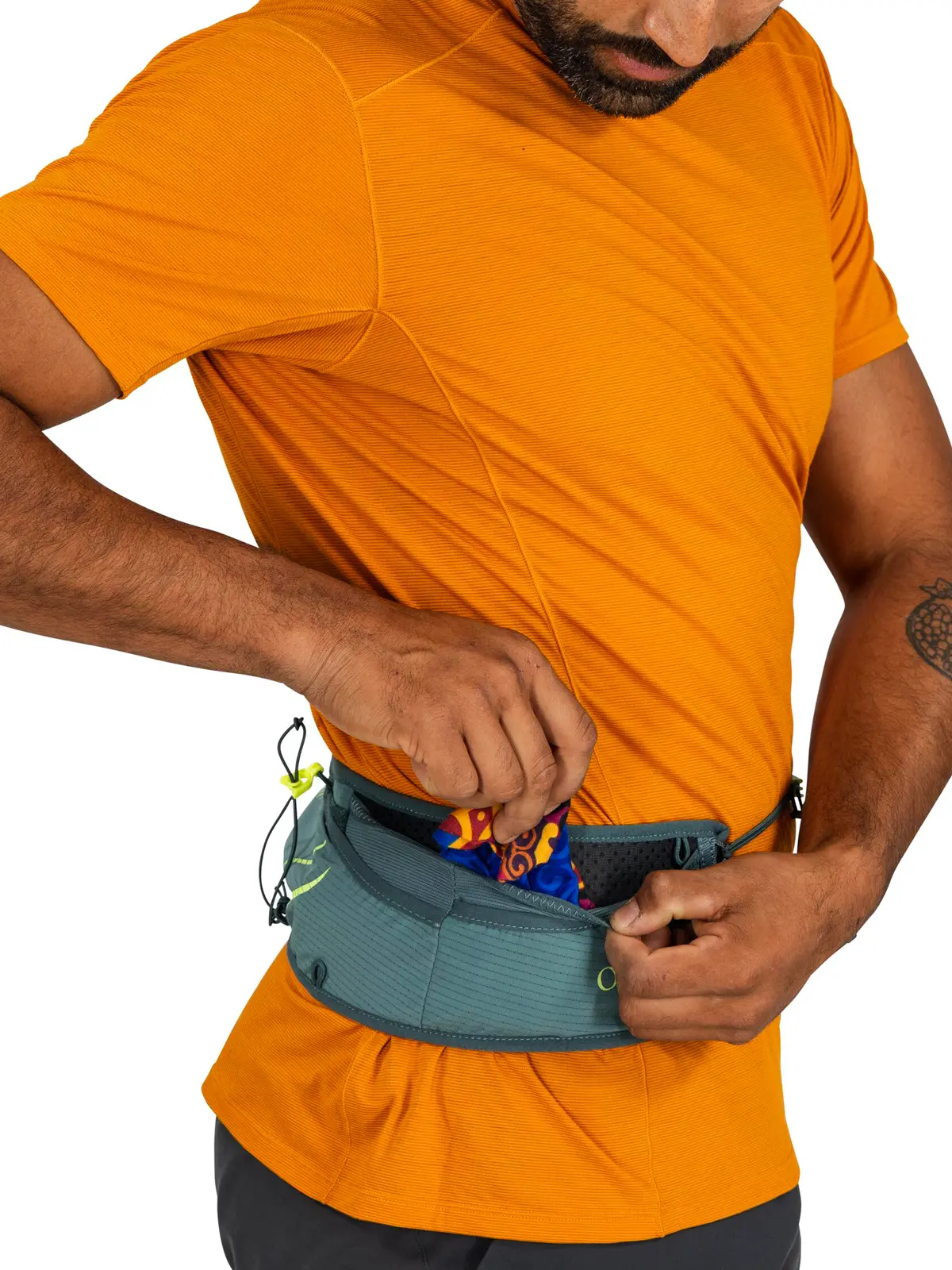 レースに特化した超軽量ランニングベルト。優れたフィット感、ブレを抑えた収納、トレッキングポール固定機能が特長です。交換式バンジーコードは耐久性に優れ、ソフトなエアメッシュ素材が長距離走行でも快適な装着感を実現します。背面スタッシュポケットにはハイドローリック500mlソフトフラスクを収納可能。