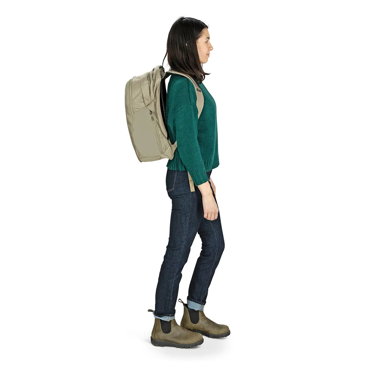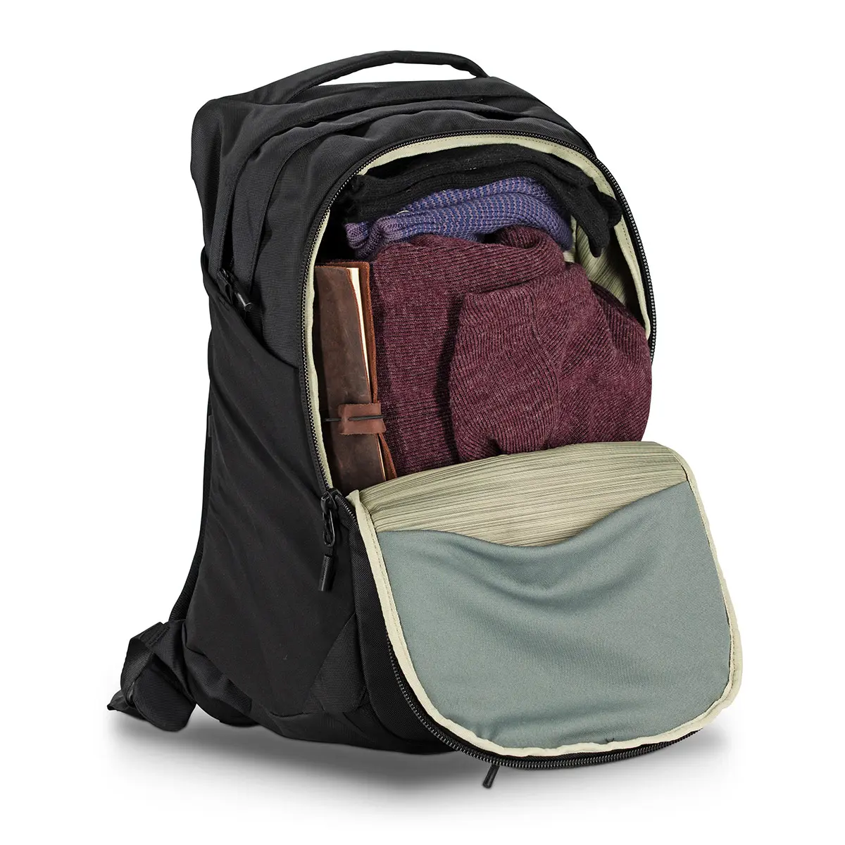 普段使いはもちろん、ビジネスシーンや出張にも使える汎用性の高いバックパック。背面はエアスピードと呼ばれる通気性の高いメッシュ構造を採用。パック背面周囲に内蔵されたワイヤーにピンと貼られたメッシュ地が背中とパックの間に空間を生み、空気の通り道をつくることで快適な背負い心地を実現しています。立体的なフレームはパック下部にも内蔵されており、床においてもパックがしっかりと自立します。自立時にはPCスリーブが床に触れない構造のため、PCを傷つける心配もありません。カフェでの作業や電車など、スペースのない場所でも床に置いておくことができます。メインの荷室に加え、ノートPCスリーブや書類やペン等の文房具を整理して収納できるポケットを多数装備。ビジネスシーンにもなじむ、ミニマルでクリーンなシルエットです。