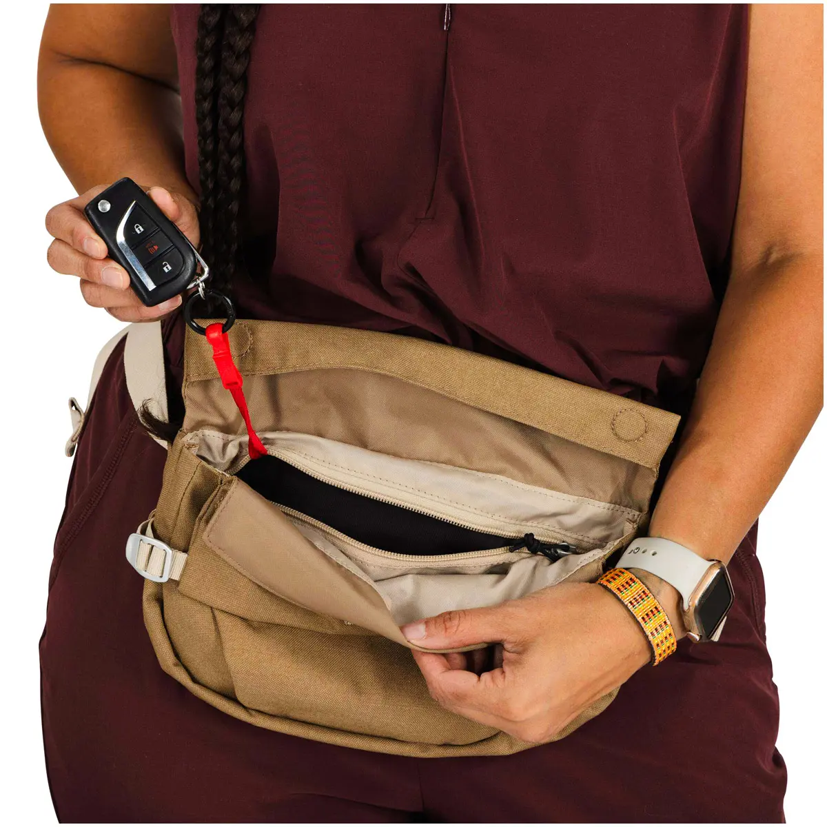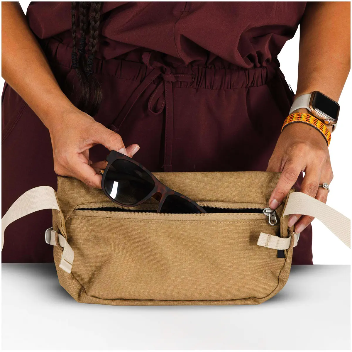 ヒップバッグとしても、クロスボディバッグとしても使える、最小限の荷物で歩き回りたいミニマリストのためのバッグです。