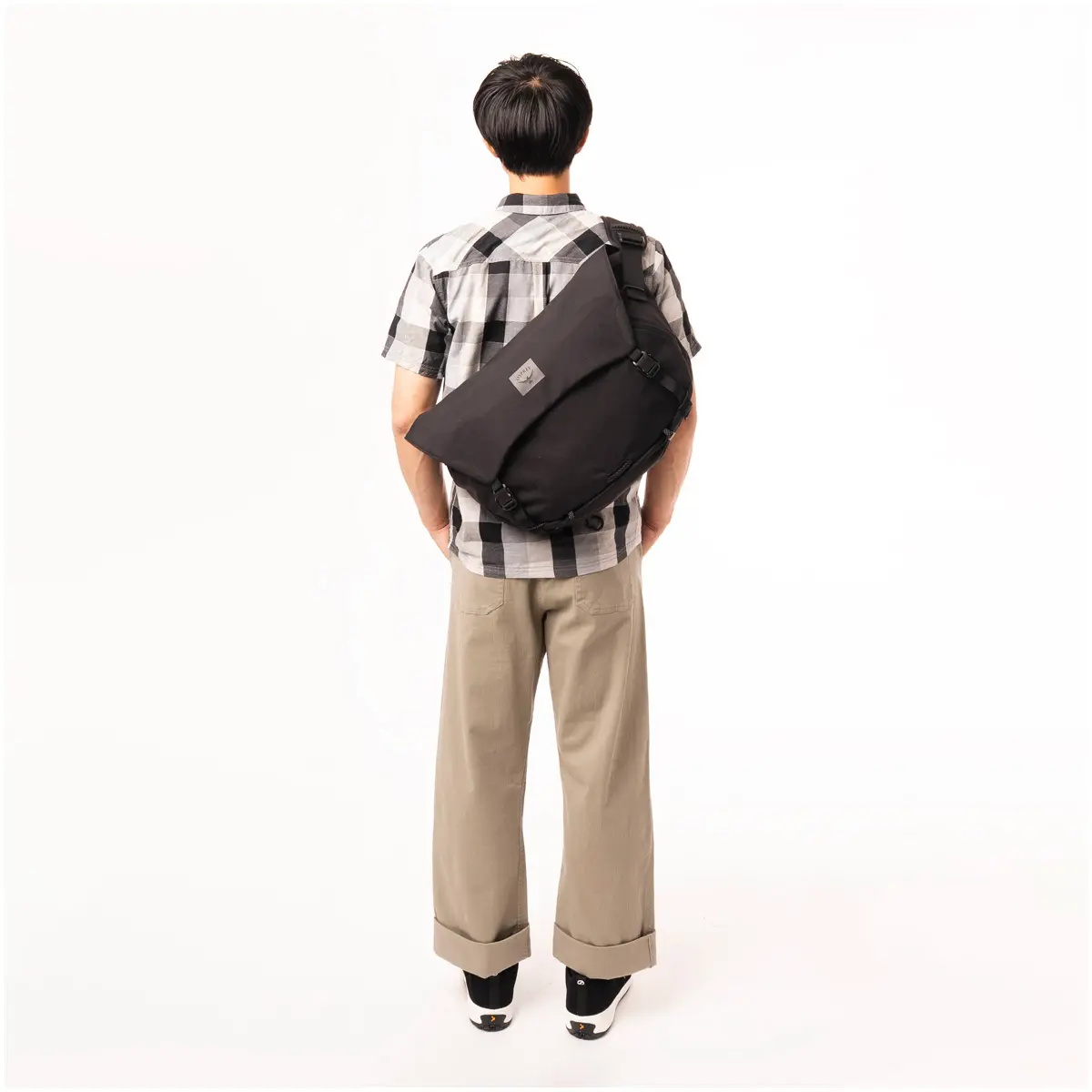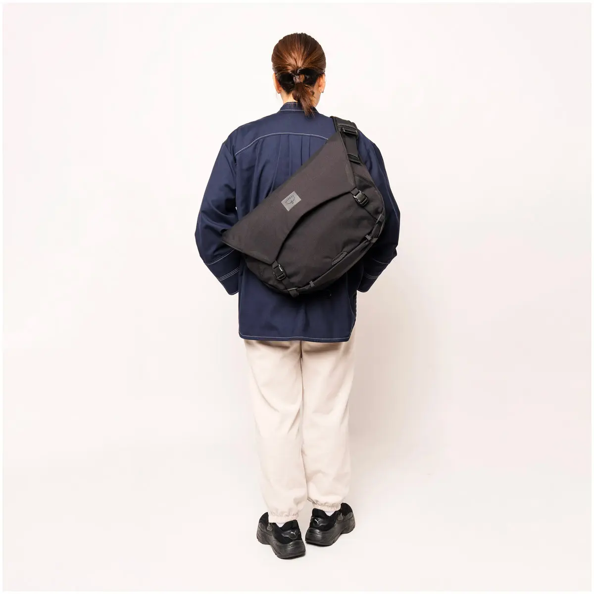 メトロンメッセンジャー18は、ショルダーストラップを付け替えて左肩にも右肩にも掛けられる、斜め掛けのメッセンジャーバッグです。スタビライザーストラップを備え、走行中もパックが前に滑り落ちません。ショルダーストラップのパッドは取り外して反転できるので、左右の肩どちらに掛けても最適なフィット感を得られます。