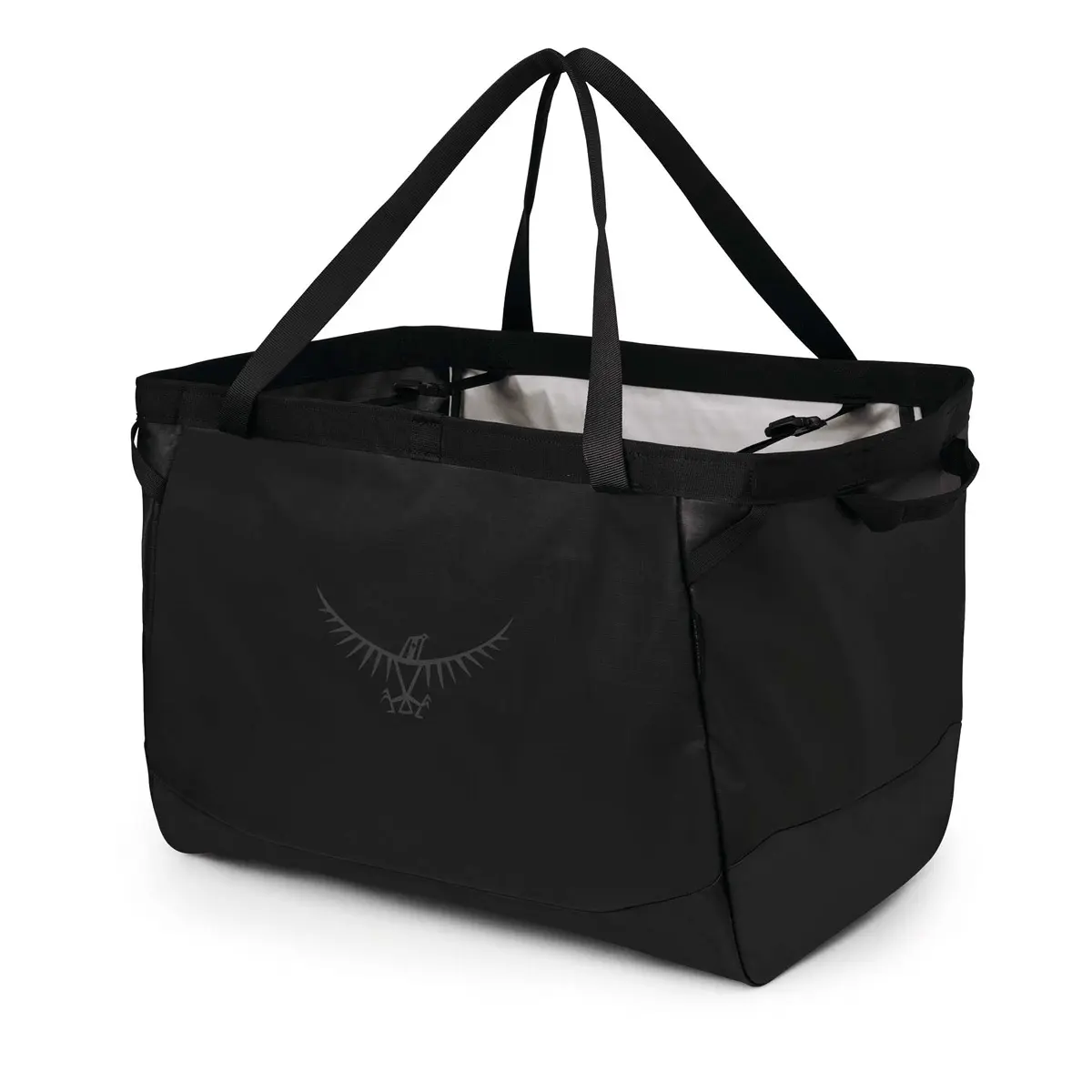 荷物が入っていなくても自立し、スムーズな荷物の出し入れが可能です。60リットルには取り外し可能なマットが標準装備されており、シューズの履き替えや野外での着替えとして使えるほか、トートの底に敷いたり上に被せたりして、荷物の保護として使えます。