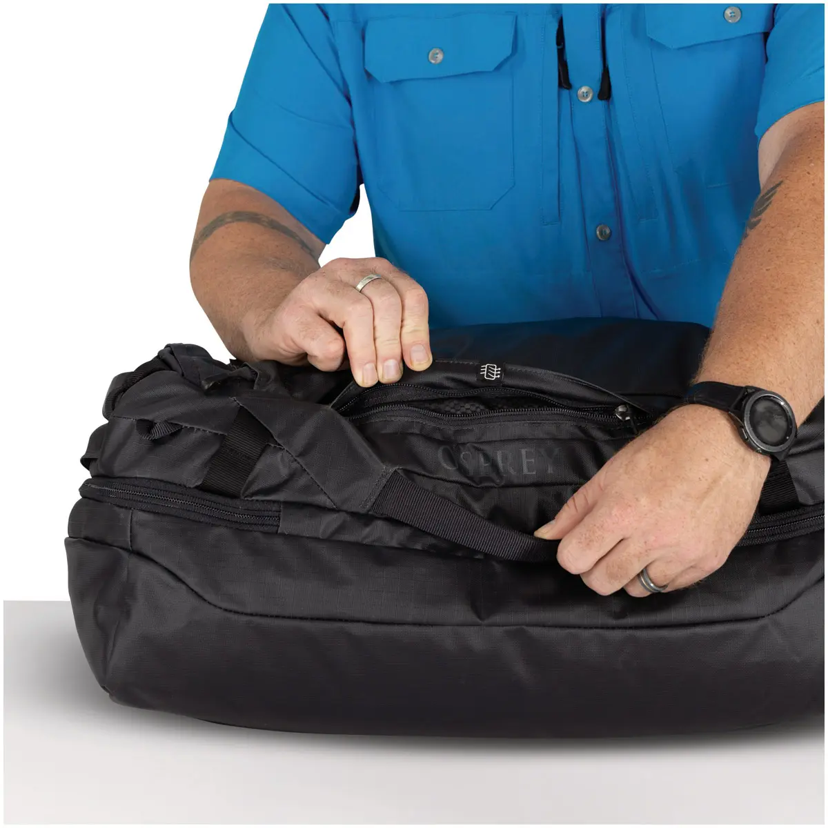 トランスポータースカッフルは、内部に仕切りを備えた整理整頓のしやすいダッフルパック。70リットルは、ちょっとした遠征や旅行など多めの衣類やギアを持ち運ぶのに適したサイズ。