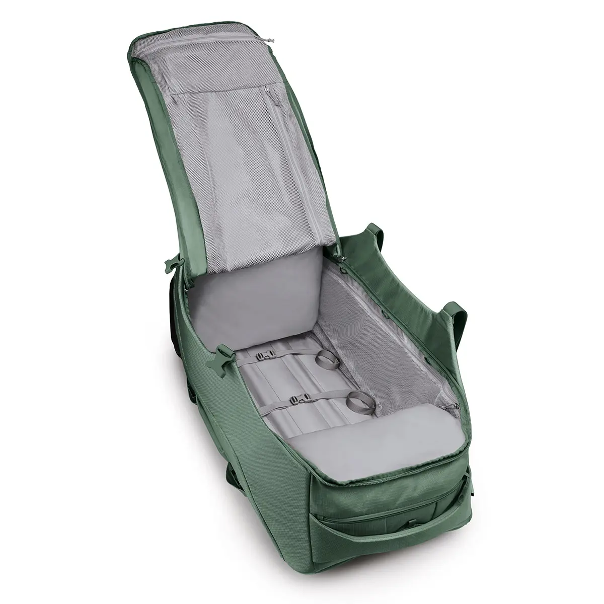 様々な状況に対応してくれる強さと耐久性を兼ね備えたローラーダッフル。パッド内蔵のストレートジャケットはストラップで荷物をコンパクトに安定させ、保護の役割を果たします。重い荷物を安定させる幅広のシャシーと走破性に優れる大径ホイールを搭載しています。上部と側面にはキャリーハンドルを装備。開口部が広く荷物の出し入れがしやすいメインの荷室にはメッシュ/ファブリックポケットを備えています。仕切られた下部荷室はブーツなどを収納しても他の荷物が汚れず、使わない時はつぶしてメインの荷室を拡大することができます。背面にはマガジンポケットとIDカードウィンドウ、ジッパーポケットを装備。bluesign®認証の100%リサイクル素材を採用しています。ハンドルはグリップを握り込むことで伸縮し、ボタンレスで快適になりました。