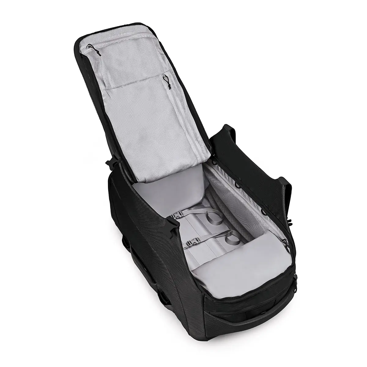 - 他の荷物を汚さないよう仕切られた下部コンパートメントにはブーツなどが収納可能