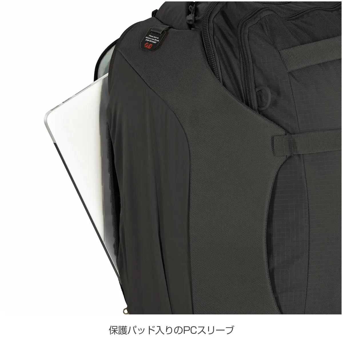 サイドに保護パッドを装備したバックパックスタイルのコンテナ。ダッフルバッグのシンプルさ丈夫さに加え、バックパックとしても背負える便利なトラベルパックです。耐久性の高いリサイクル生地を採用し、パッドが内蔵されたサイドウォールは荷物を衝撃から守ります。開口部が大きくパッキングのしやすいU字ジッパー。65リットルの荷物を満載しても安心して使えます。サイドハンドルはローラーパックのハンドルに通せる仕様。