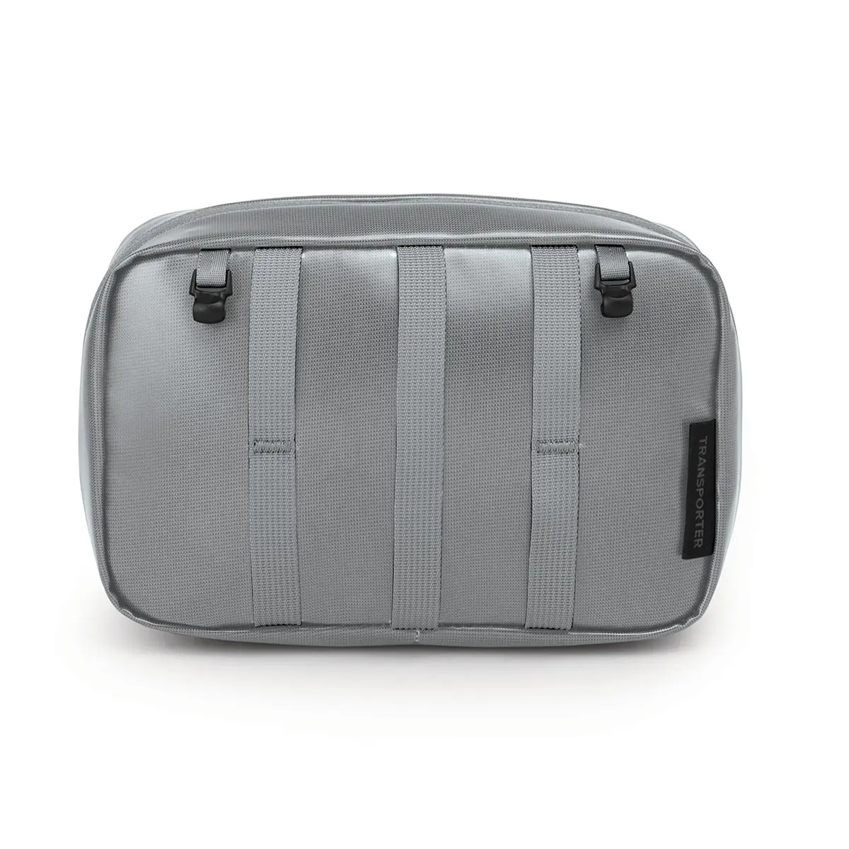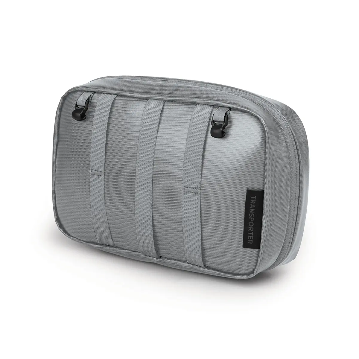 トランスポーターシリーズと同じTPUコーティングを施したオーガナイザー。耐水性と耐摩耗性に優れ、背面のスナップを利用してトランスポーターハードサイドシリーズに装着できます。正面のジッパーポケットにパスポート、内部にに2つのジッパーポケットを備えてPC周辺機器、コード類などを収納できます。