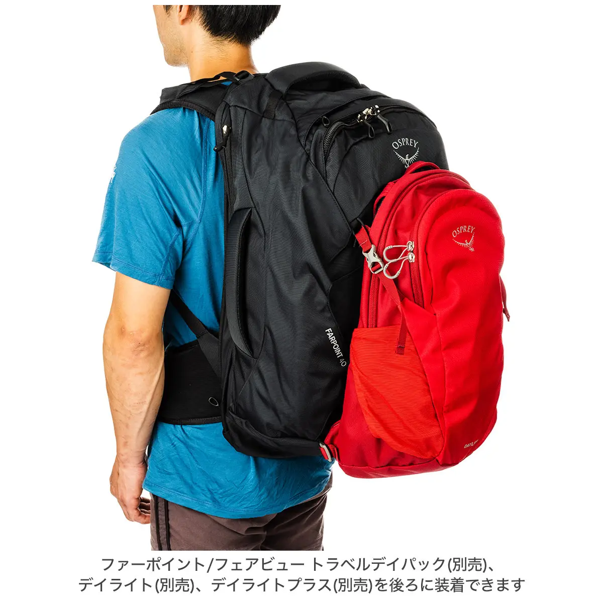 - ファーポイント/フェアビュー トラベルデイパック(別売)、デイライト(別売)、デイライトプラス(別売)を後ろに装着できます