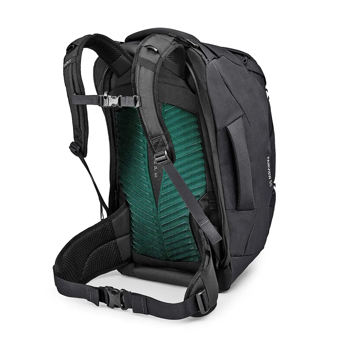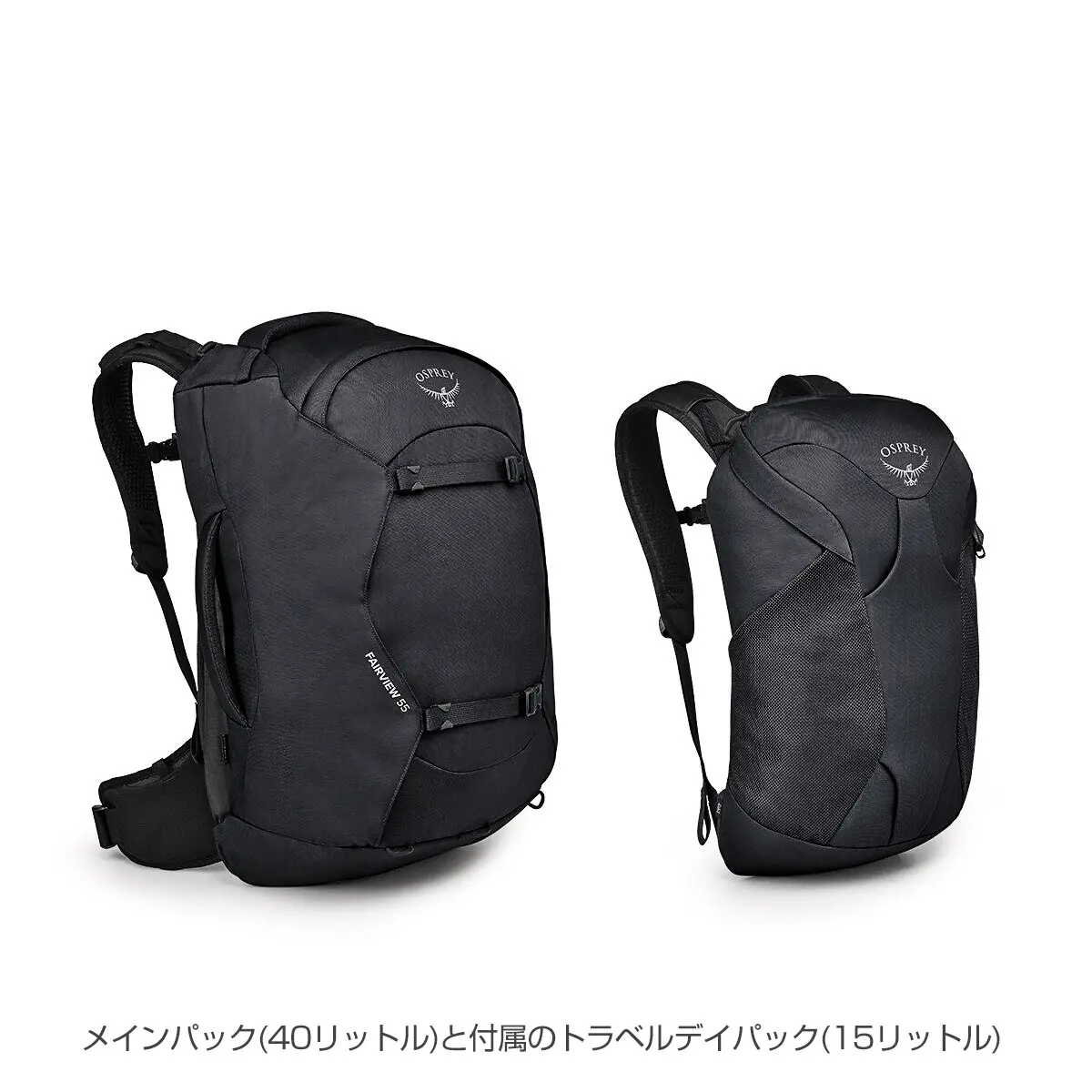 標準装備の着脱式デイパックが装備されたトラベル/トレッキングパック。フェアビュー55はファーポイント55の女性用モデルです。メインパックが40リットルでデイパックが15リットルの使いやすいサイズ。短期の出張から旅行にちょうどよいサイズです。付属のファーポイント/フェアビュー トラベルデイパックはデイトリップで使用でき、パック正面にはもちろんショルダーハーネスにも取り付け可能で、チェックイン時などでもとても便利です。