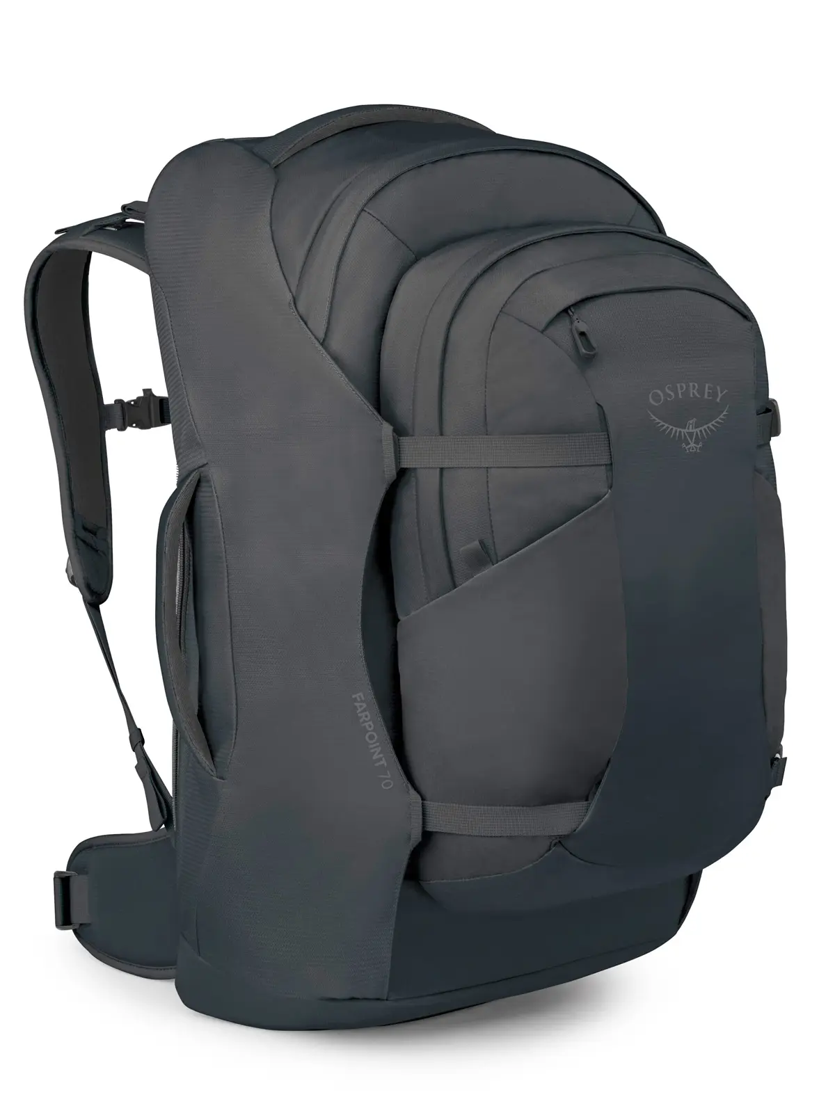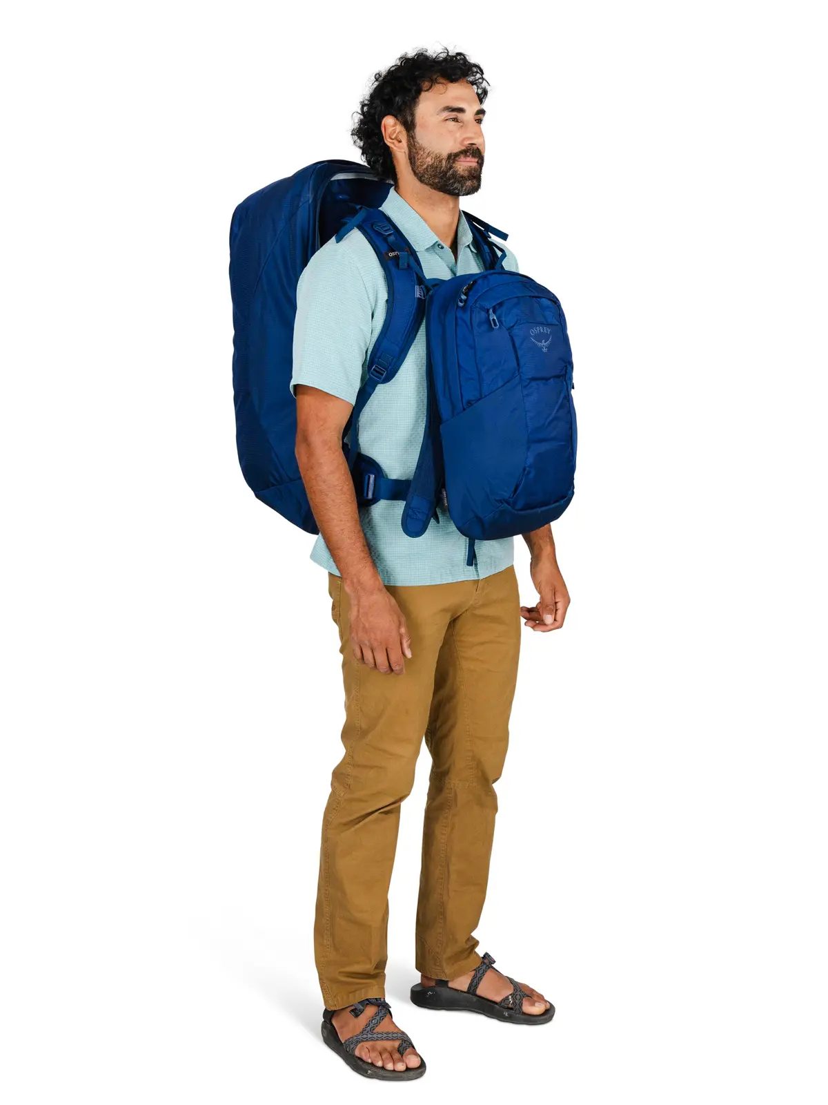 ファーポイント70はシリーズ最大容量で、55リットルのメインパックに15リットルのファーポイント/フェアビュートラベルデイパックが付属。デイパックは単体で使用できるほか、パックの正面やショルダーベルトに取り付けが可能です。