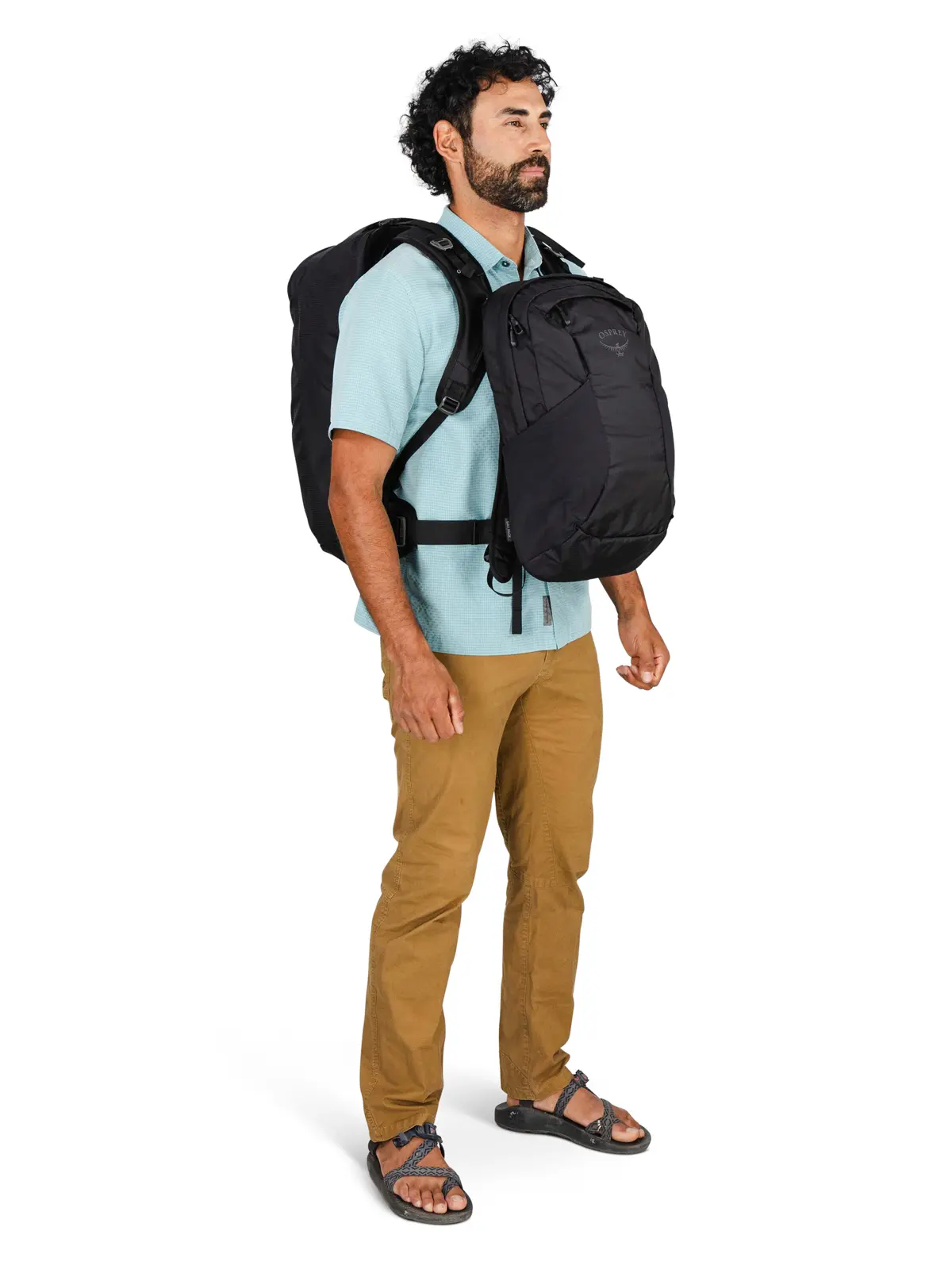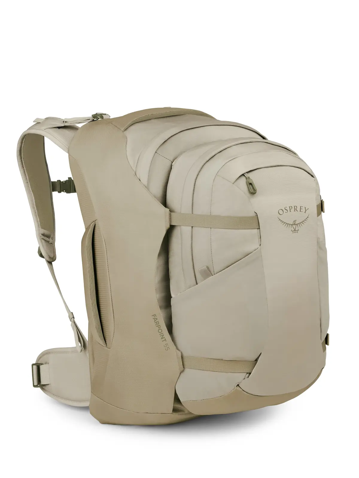55リットルは短期の出張から旅行まで幅広く活躍する汎用性の高いサイズ。40リットルのメインパックに15リットルのファーポイント/フェアビュートラベルデイパックが付属しています。デイパックは単体で使用できるほか、パックの正面やショルダーベルトに取り付けが可能です。