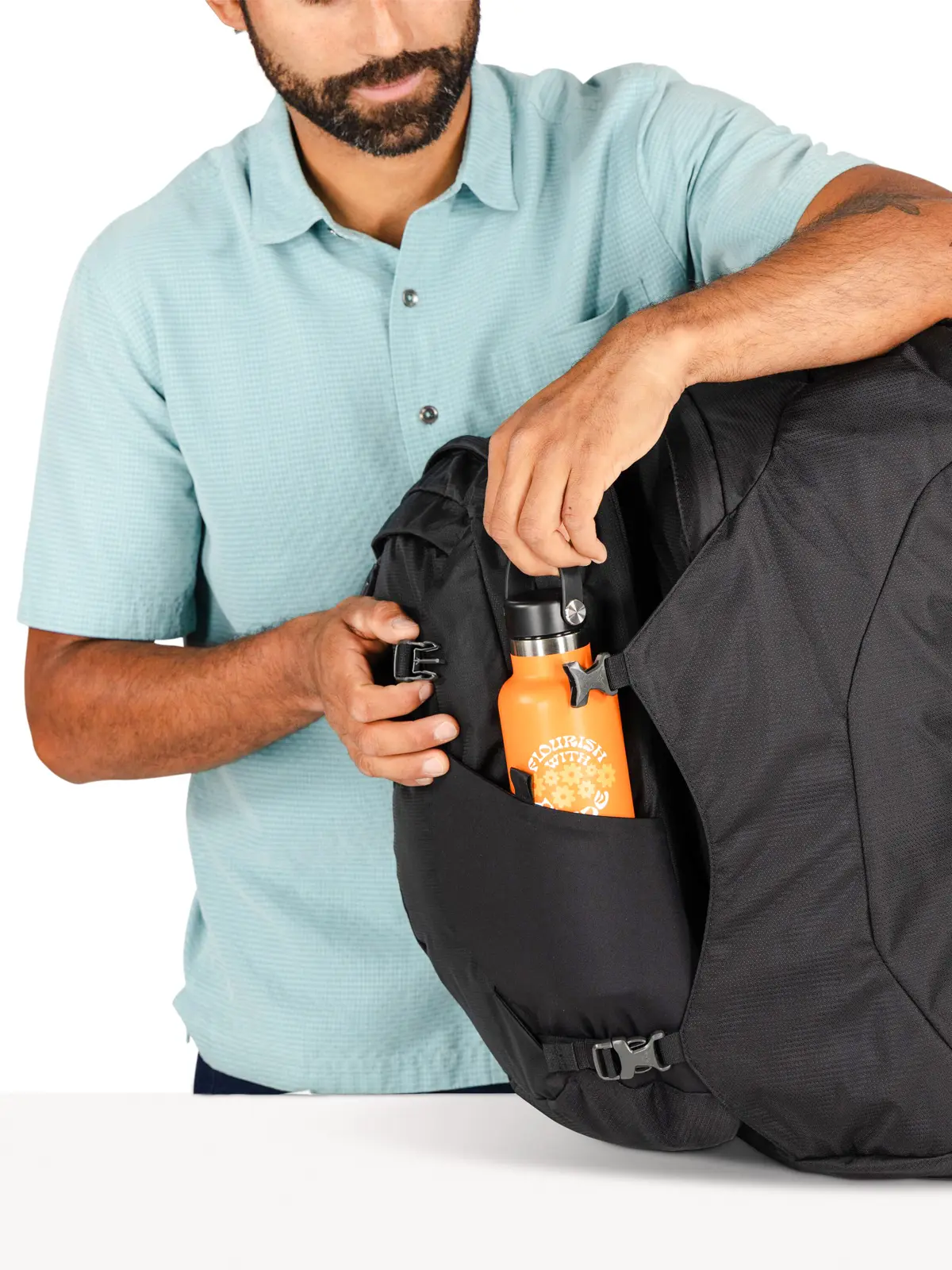 - ファーポイント/フェアビュー®トラベルデイパックをショルダーベルトに装着し、身体の前面に付けて持ち運べます