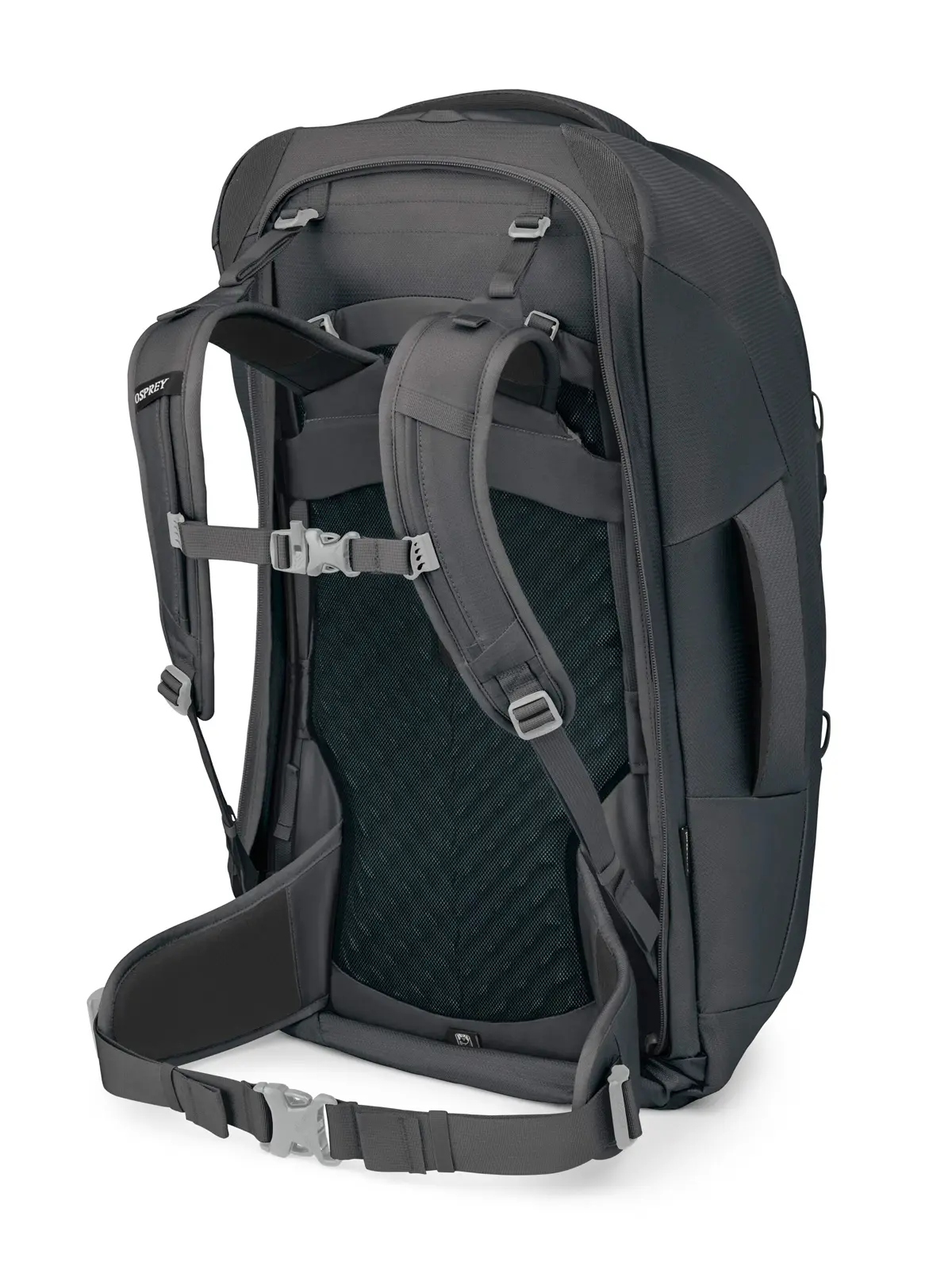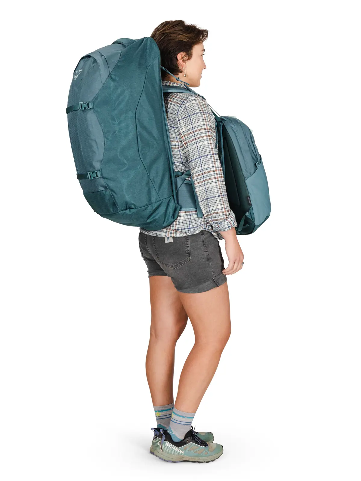 フェアビュー70はシリーズ最大容量で、55リットルのメインパックに15リットルのファーポイント/フェアビュートラベルデイパックが付属。デイパックは単体で使用できるほか、パックの正面やショルダーベルトに取り付けが可能です。