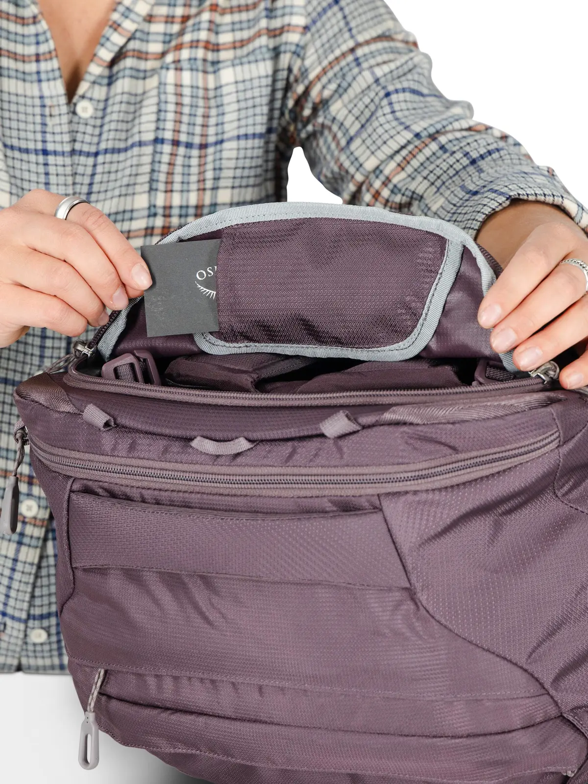• ファーポイント/フェアビュートラベルデイパックをショルダーベルトに装着し、身体の前面に付けて持ち運べます