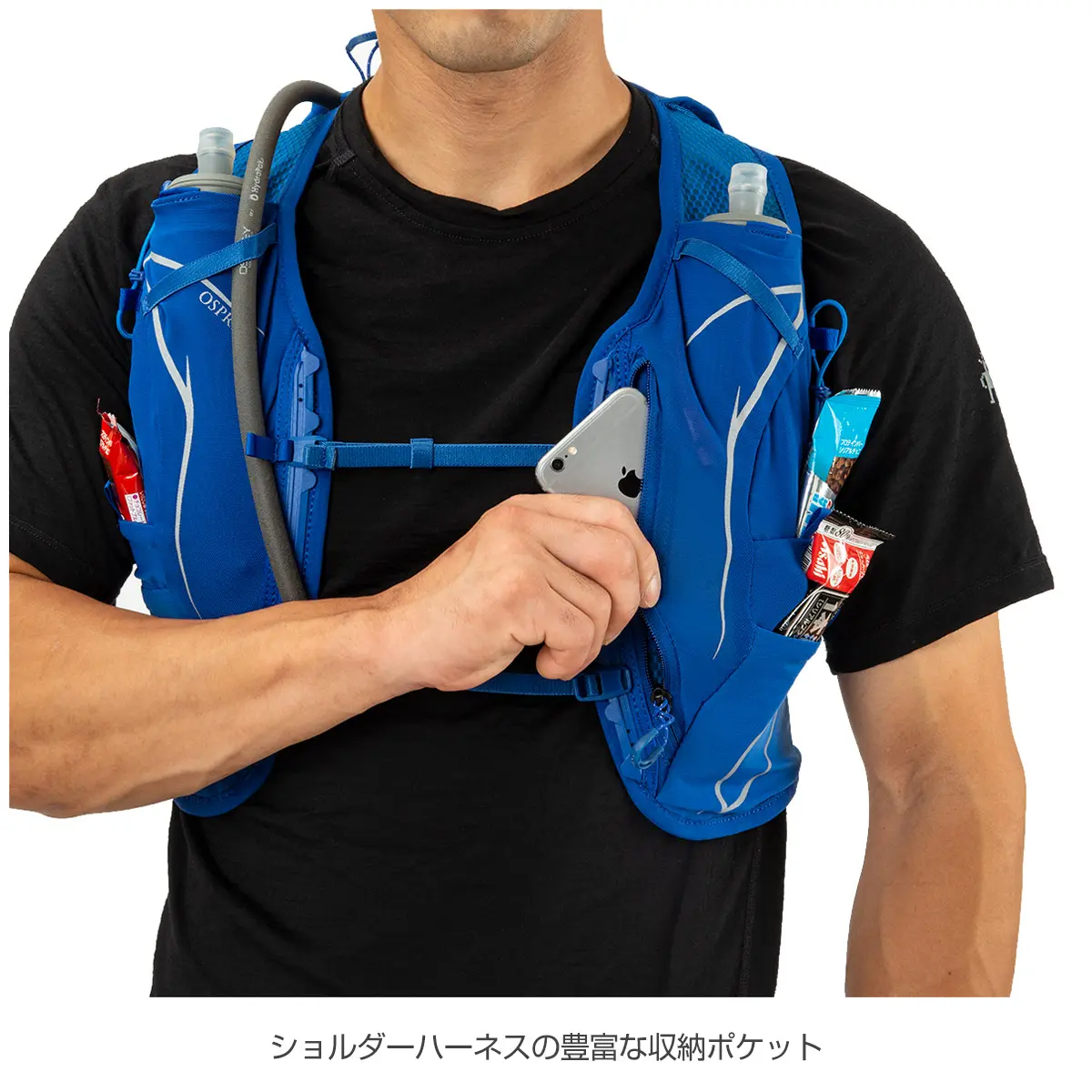 最小限の荷物を背負って野山を駈けるのに適したハイドローリックパック。サポート感、使い勝手をリファイン。身体にぴったりフィットし、上下にブレません。水、ジェル、ホイッスル、スマートフォンなどをスッキリ収納でき、トレイルで素早く出し入れできます。