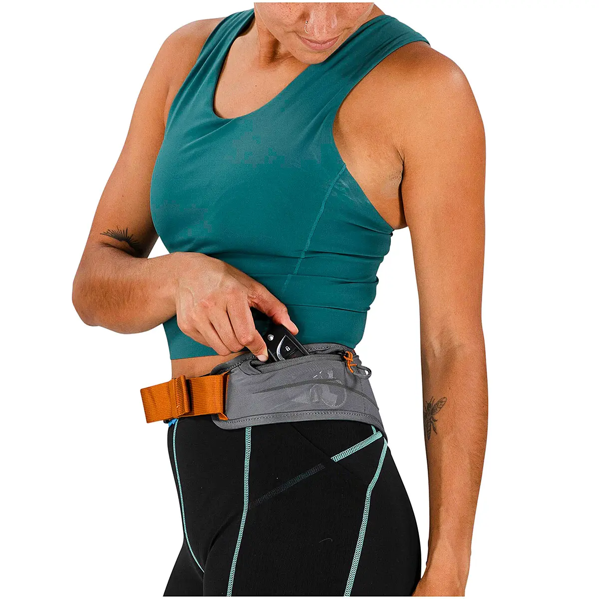 短時間のトレイルやランニングに適したランニングベルト。スマートフォン、鍵、エナジージェルなど、必要最小限のアイテムを快適に持ち運べます。通気性がよく身体を包み込むような軽量パッドと、幅の広いウェビングストラップがしっかりと身体にフィット。メインポケットの内側にあるスタビリティポケットはスマートフォンの上下動を防ぎます。全体に施されたリフレクティブプリントが早朝や夜間でも視認性を確保します。