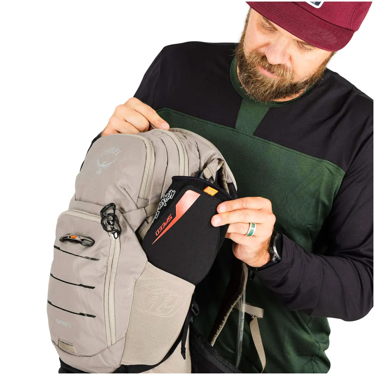 必要な時に工具を素早く取り出せるロールアップツールポーチや、フルフェイスヘルメットを固定できるストラップ、ホースを収納するトンネルを備えたアクセスしやすいハイドレーションポケットなど、MTBに必要な機能をフル装備しています。