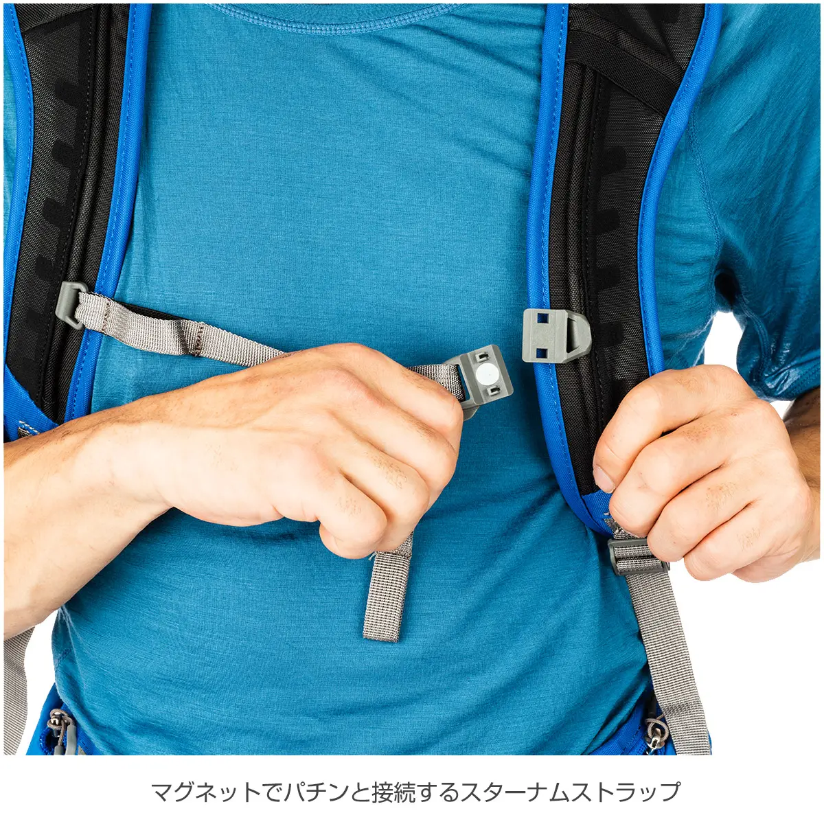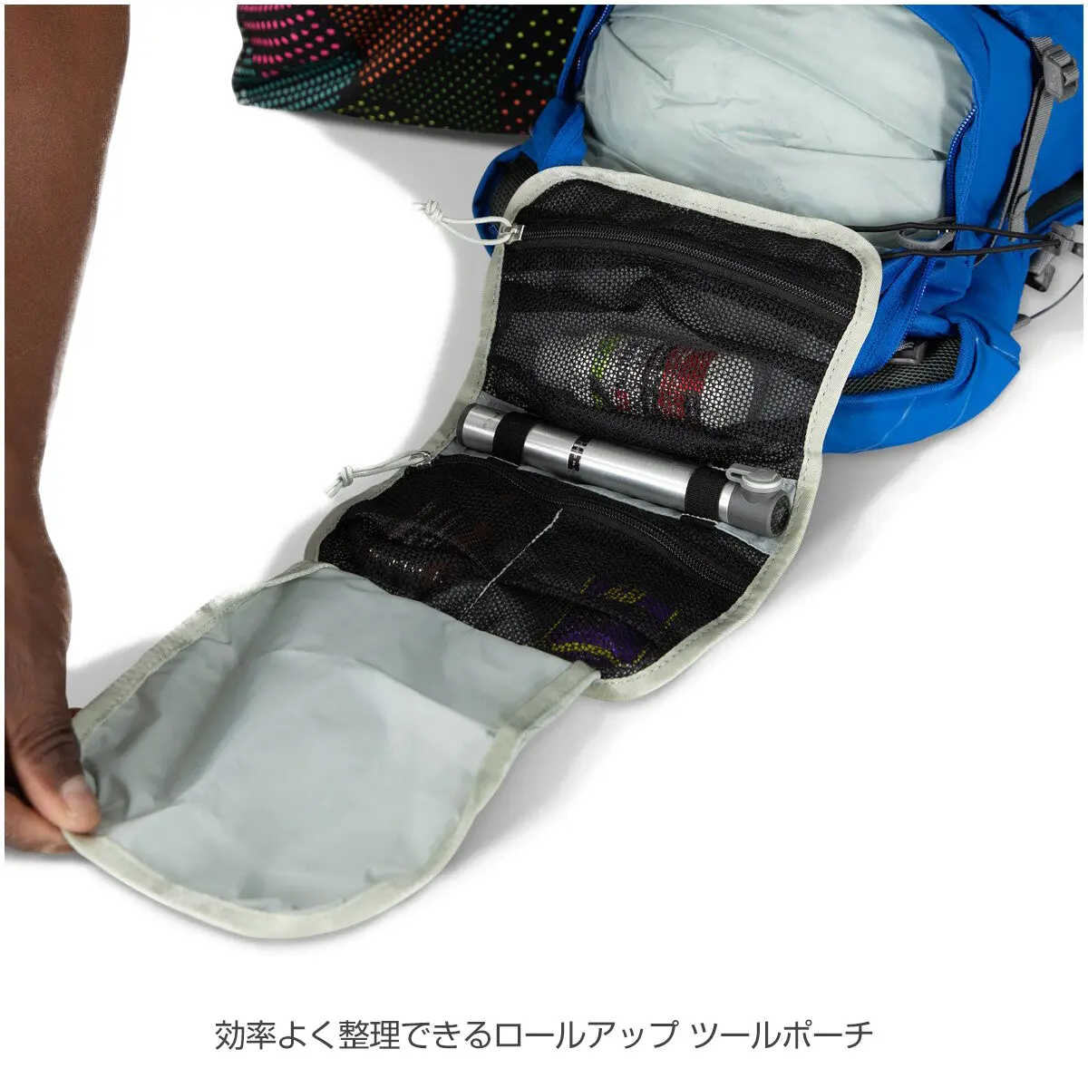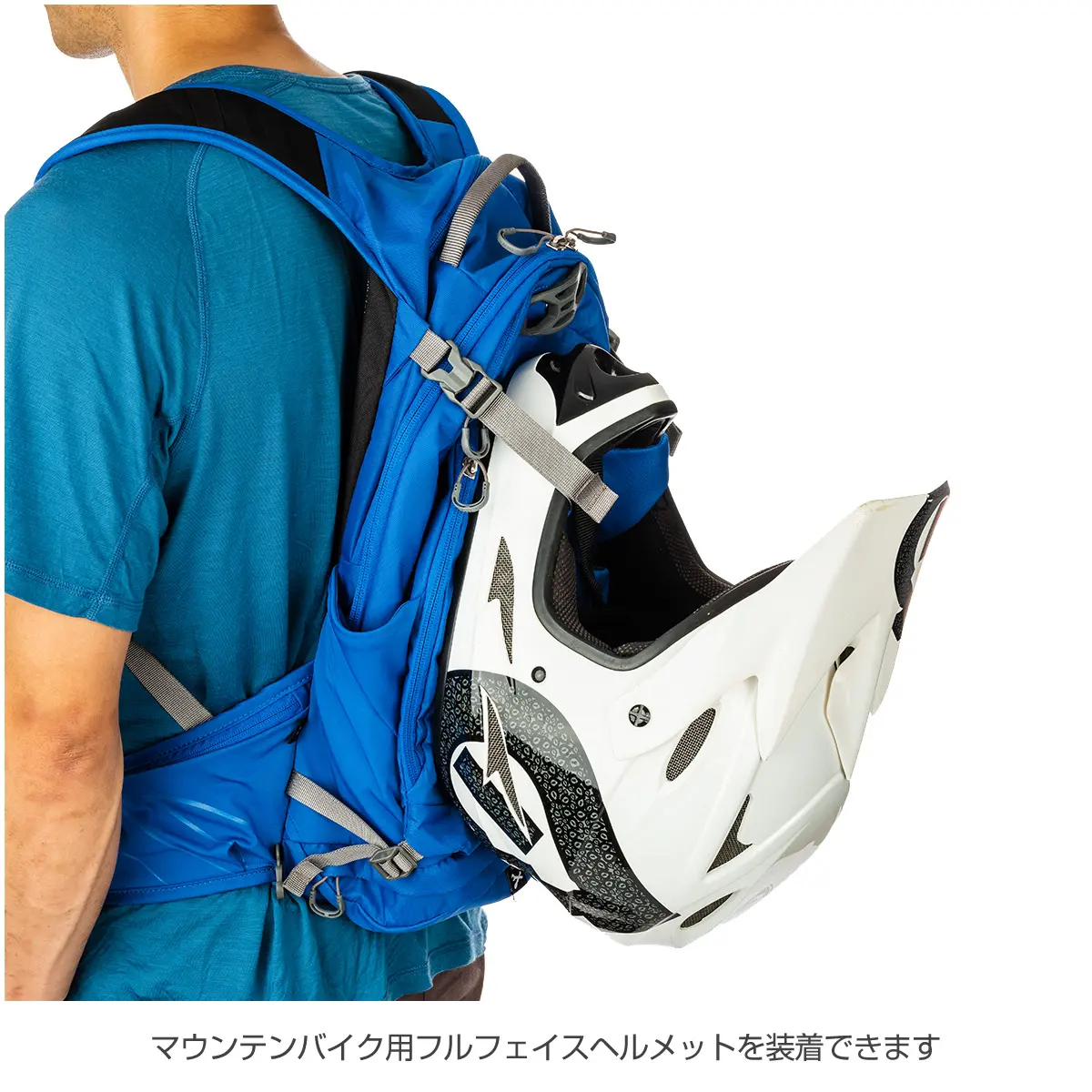 ロングコースのMTBやアドベンチャーレースに適したプレミアなマウンテンバイクパック。ハイドレーションスリーブやフルフェースヘルメット対応のストラップ、サイクルツールポーチなど、MTBに必要な機能をフル装備しています。ダイナミックな身体の動きに追従するエアスケープサスペンションや、胸元に幅を持たせたウィング型のショルダーハーネスにより、長時間のライディングも快適に。片手で操作できるスターナムストラップは、ハイドレーションの飲み口をマグネットで固定できます。専用のツールポケットには修理キットを収納できるため、イザというときのアクセスもスマートです。bluesign®認証リサイクル素材を採用。付属するレザヴォアのデザインも一新されました。
