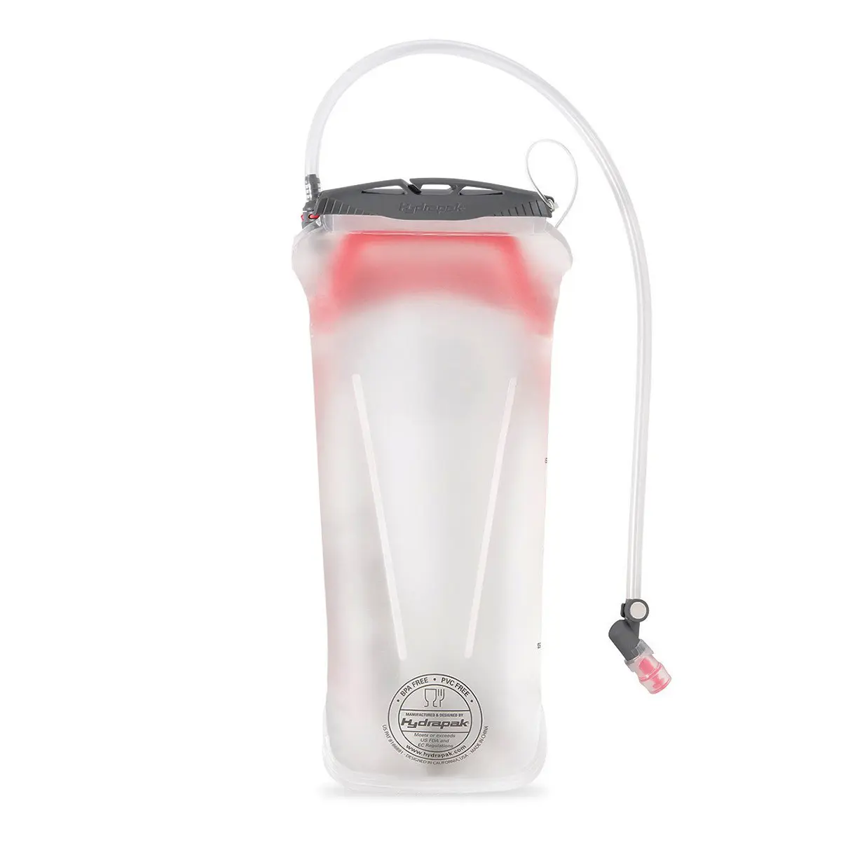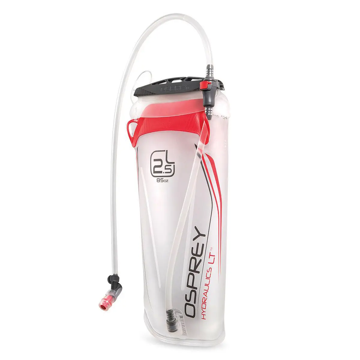 レザヴォアはオスプレーの給水パック。大/中型パックに適した「レザヴォア」(青)と、軽量パックに適した「レザヴォアLT」(赤)の2タイプ。「レザヴォアLT」はバックプレートを省略した軽量モデル。代わりに本体内部に2つの仕切りを設けて本体の膨張を抑え、バックパックにスムーズに出し入れできます。また、ワンタッチでホースを分離/接続できるクイックコネクトを備え、ショルダーベルトにホースを固定したまま、本体だけをパックから取り出せます。