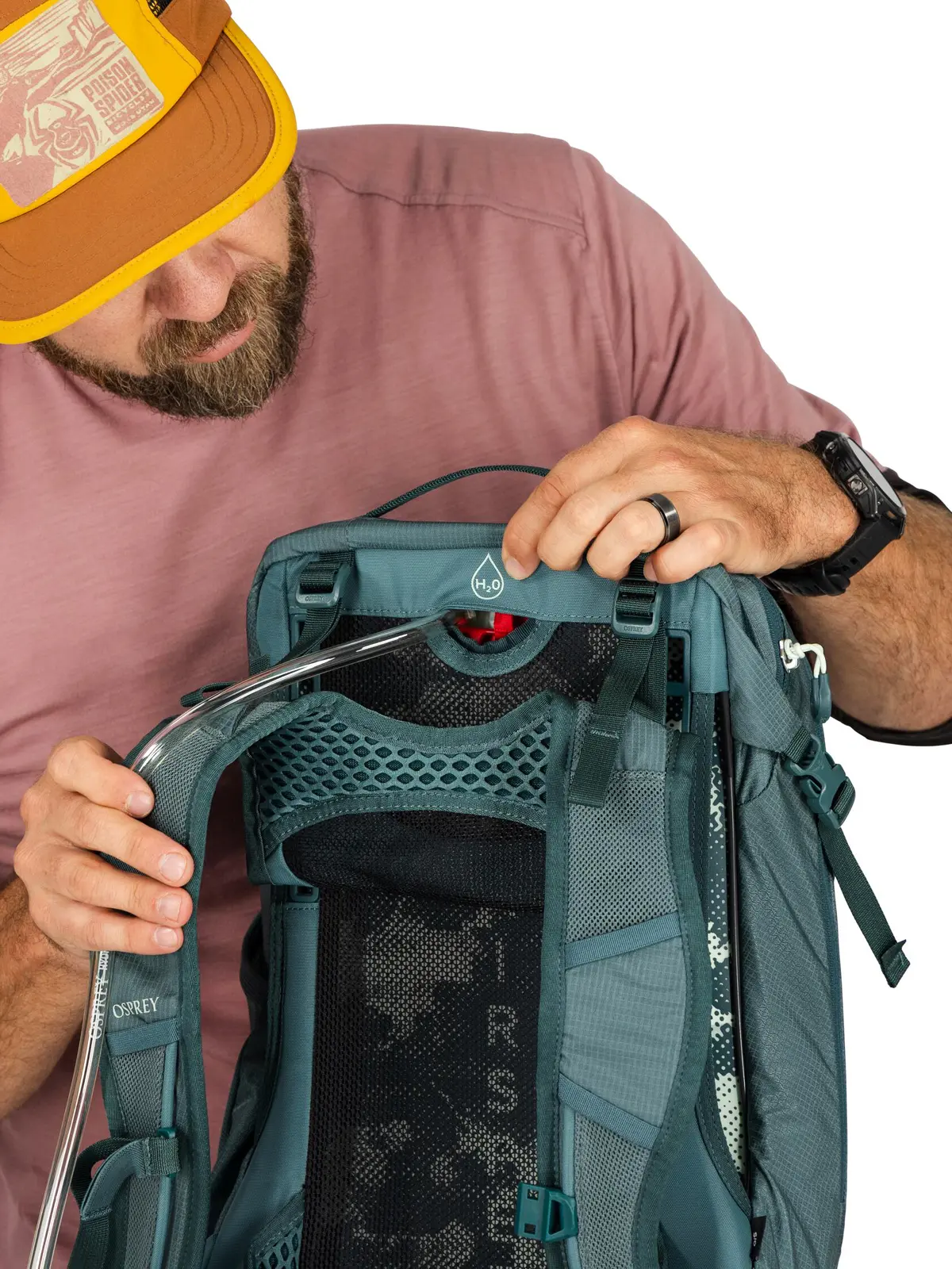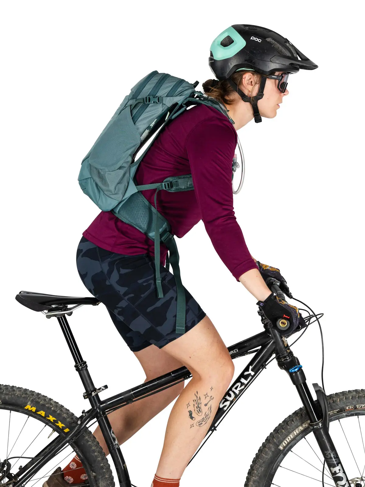 LTレザヴォア2.5Lとマグネットバイトバルブを備えたプレミアムバイクパック。背面長は調整可能で、男女を問わず最適にフィットできます。通気性の高いエアスピードサスペンションとエアメッシュヒップベルトが、激しいライド中で熱くなった身体をクールに保ちます。耐久性・耐候性に優れ、あらゆるコンディションに対応する展開式レインカバーが付属。