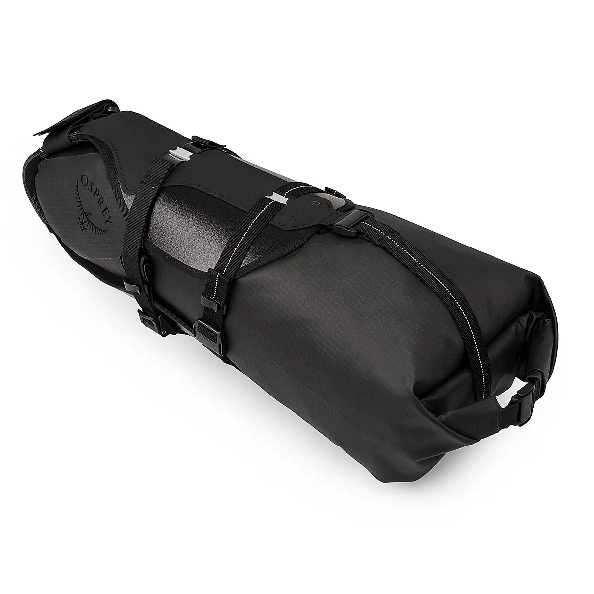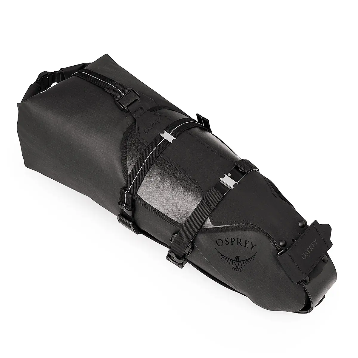 サドルの下に装着できるドライバッグ。雨量の多い日にも安心な厚いコーティングと、アルミステー入りの堅牢な作りが特長です。取付ベースとバッグが別体となっており、フレームからベースを外さずにバッグのみをスムーズに脱着できます。バッグ中央には空気抜きの弁があり、水を浸入させずに中身を圧縮することができます。