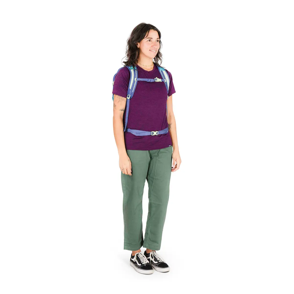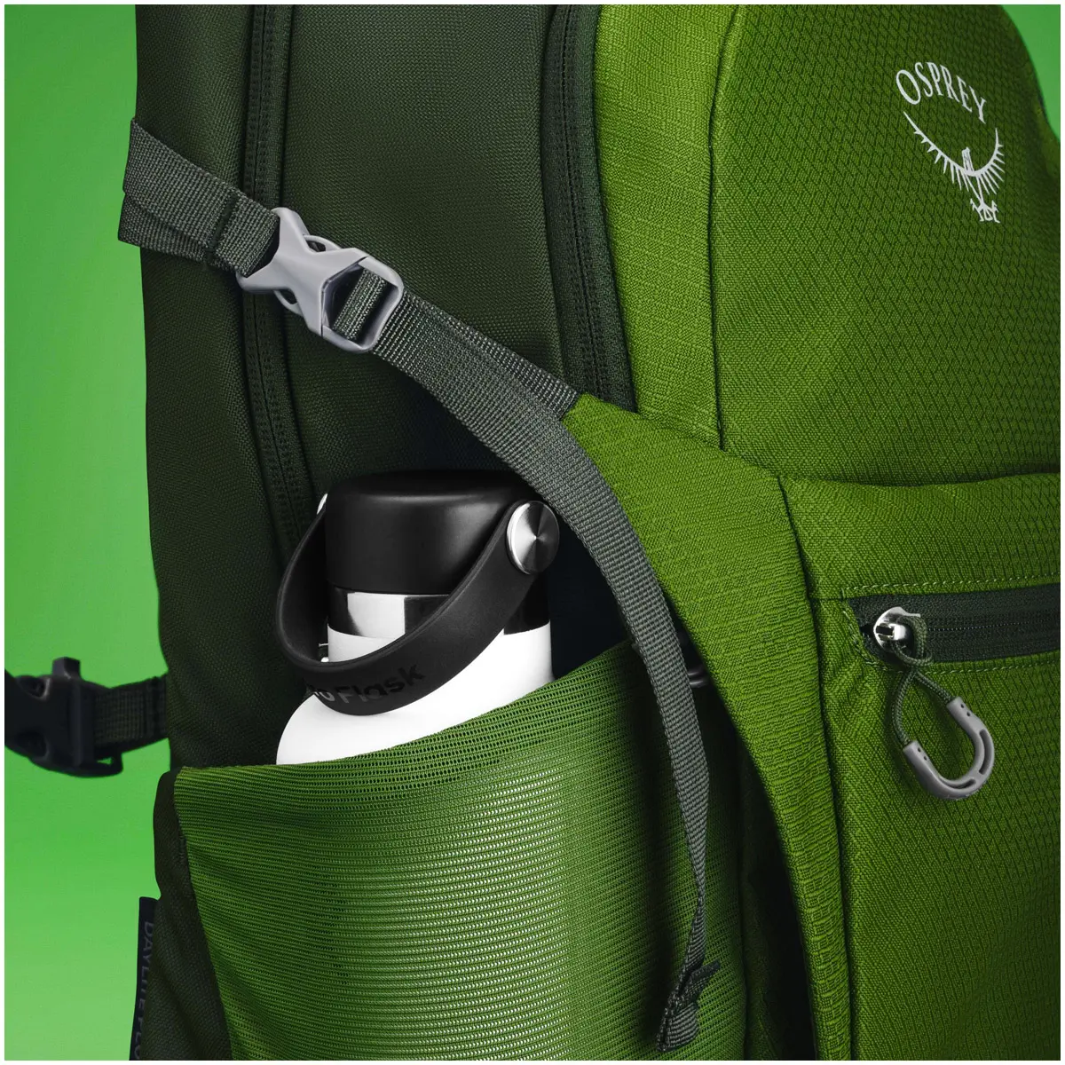 デイライトに容量・機能を追加した小型パック。軽量でシンプルな造りながら快適な背負い心地を実現しています。タウンユースから旅行、サミットパック等様々な場面に対応できるオスプレイ製品の中で最も多様に使用することができるパック。生地は、GRS認証リサイクル・ポリエステル/PFCフリーのDWR(耐久性撥水)加工を採用しています。