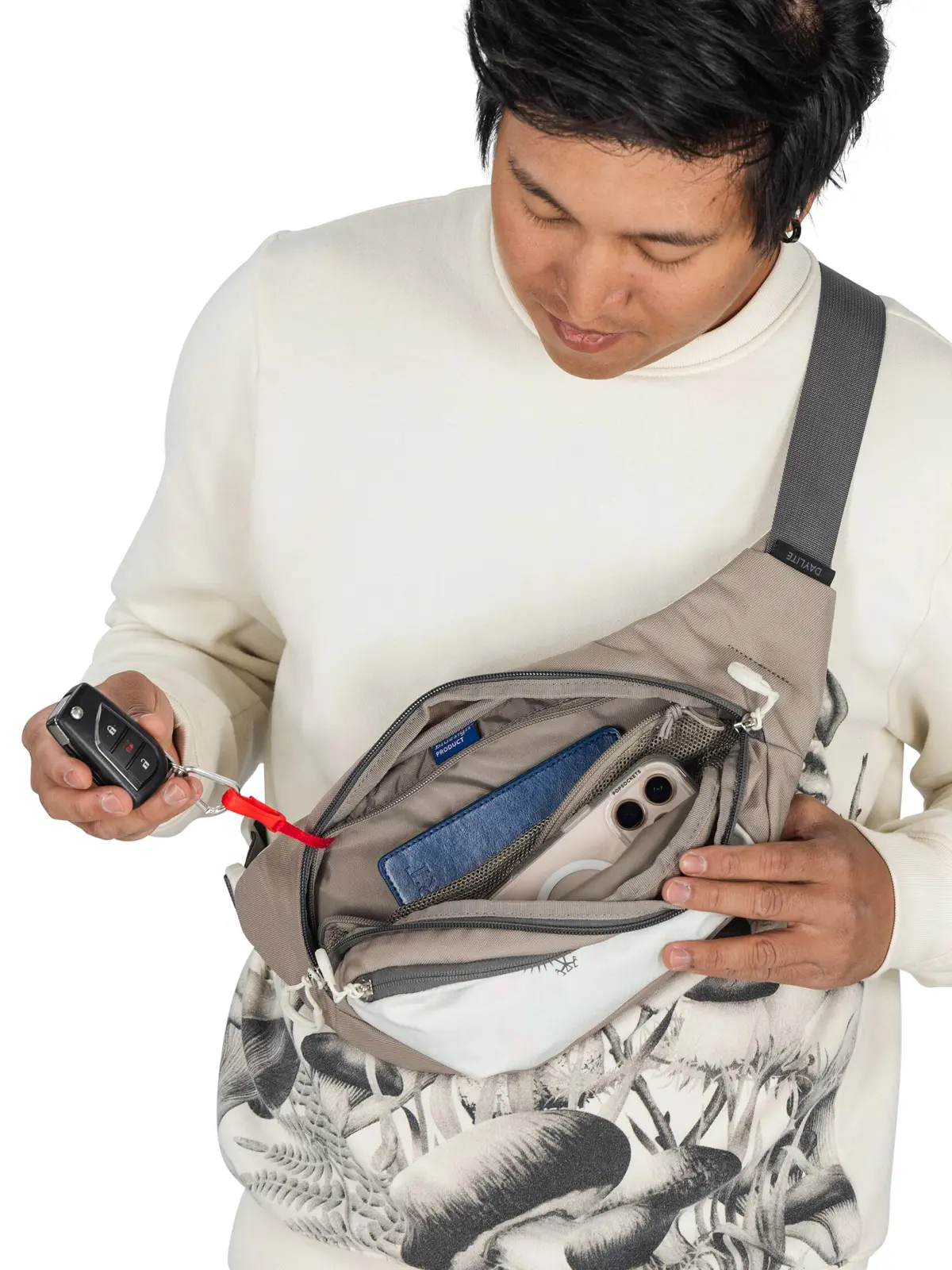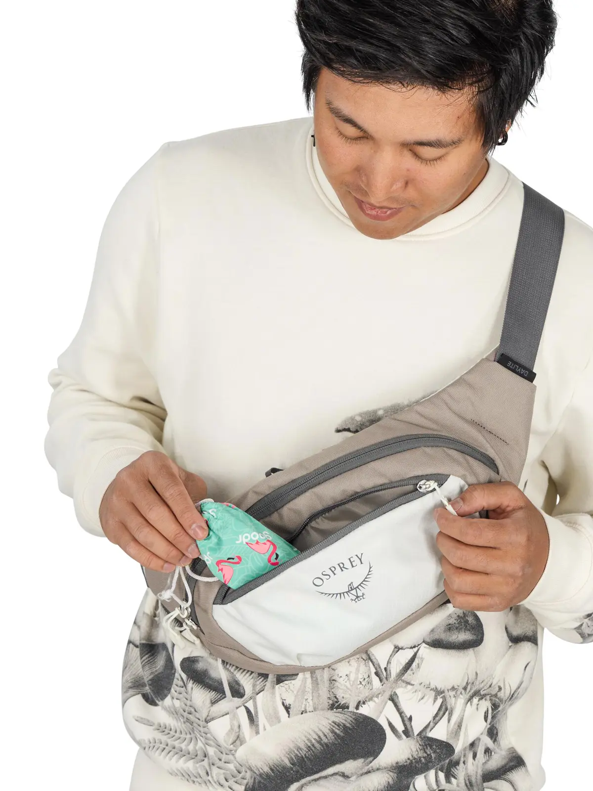デイライトシリーズ最小の小型パック。携帯電話、財布、鍵、その他の貴重品を整理して入れておくことができます。ハイキングやサイクリング、犬の散歩の際には、持ち物が安全に、しっかりと体に固定されていることを確認しながら、安心して行動することができます。bluesign®認証を受けた高品質のリサイクル素材、GRS認証リサイクル・ポリエステル/PFCフリーのDWR(耐久性撥水)加工を採用。