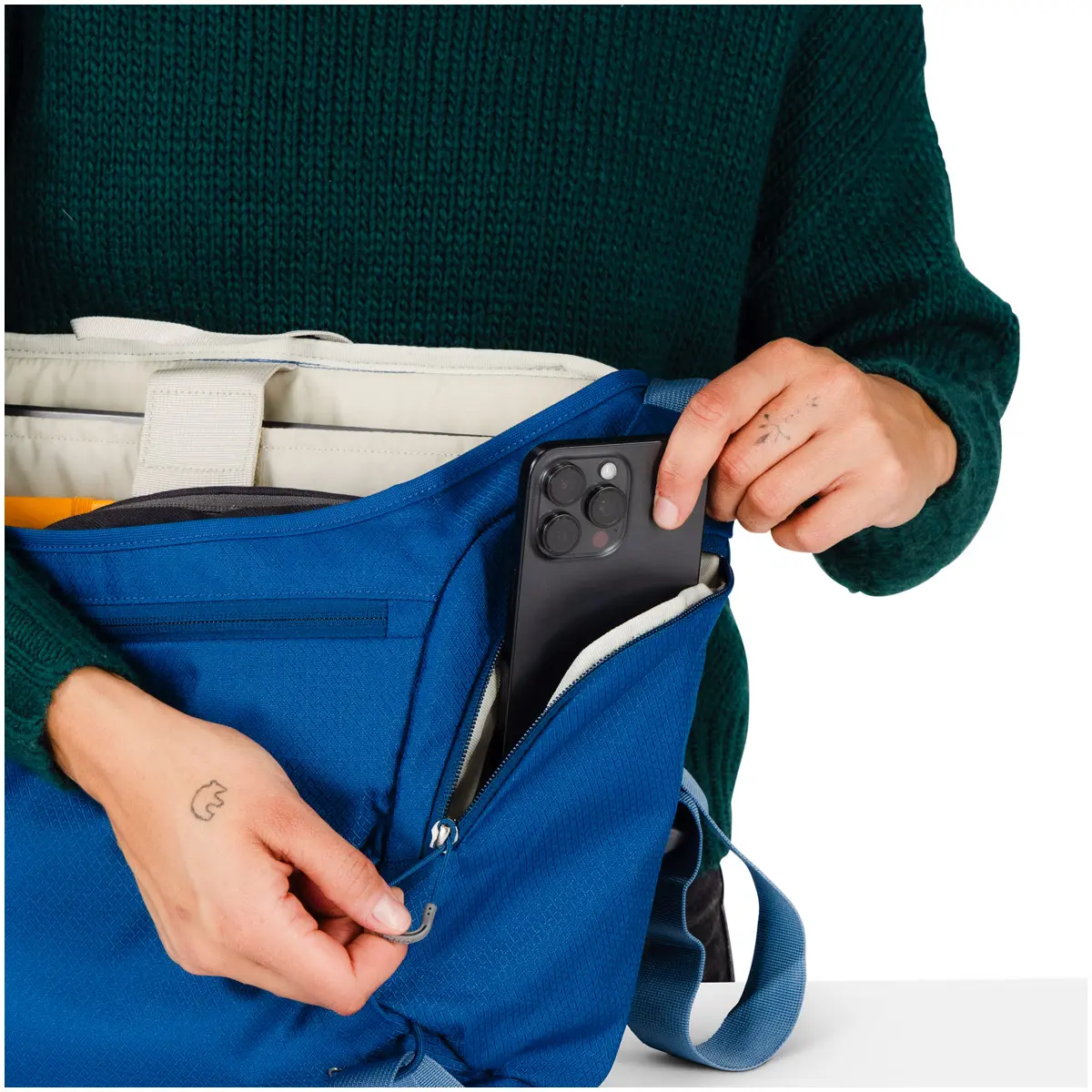 通勤、通学にも使用できるメッセンジャーバッグ。着脱のしやすさはもちろん、背面とショルダーパッドのエアスケープメッシュパネルは快適さを保ちます。PC・タブレットスリーブは14インチまでのノートPCに対応。ジッパー付きフロントポケットとサイドジッパーポケット、ストレッチメッシュサイドポケット、持ち運びに便利なグラブハンドルを装備しています。