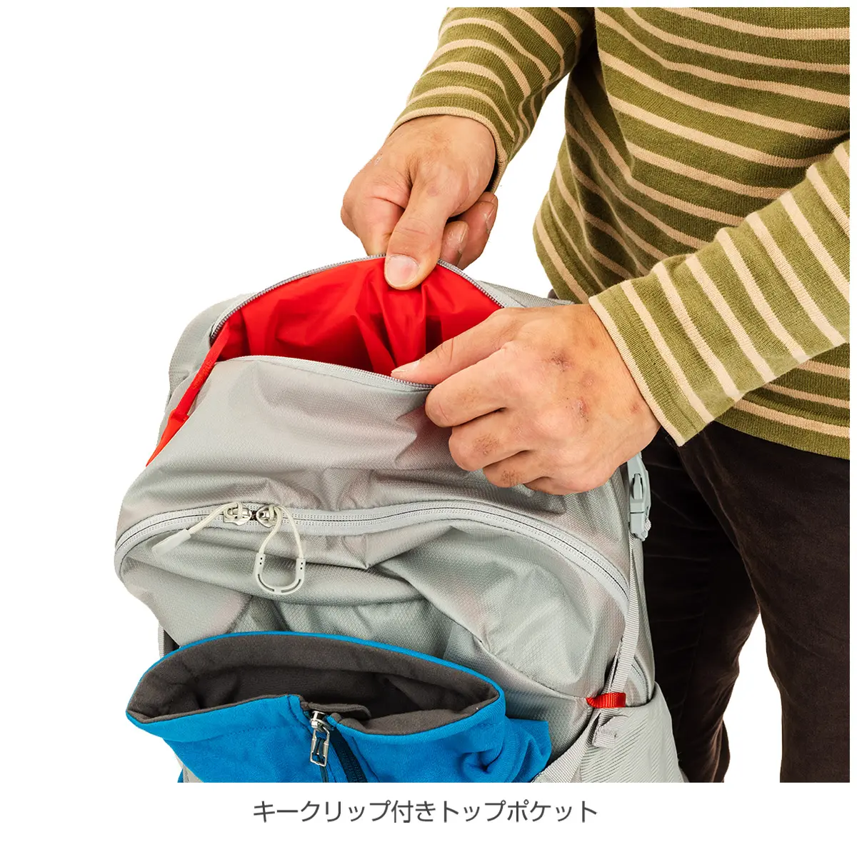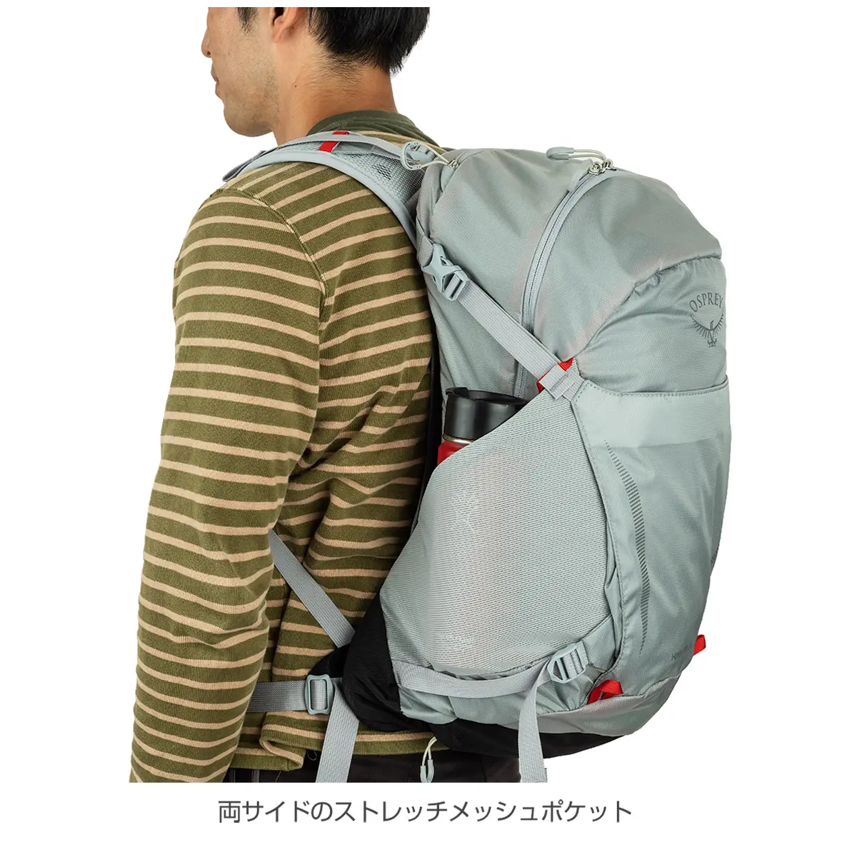普段使いからハイキングまで使えるシンプルなベンチレーションパック。ハイクライト26はデイハイクに適したライトなベンチレーションパック。身体とバックパックの間にメッシュパネルで空間を設けることで、通気性が飛躍的にアップしています。トレッキングポール固定ループやレインカバーの標準装備など、コンパクトながらハイキングに必要な機能を充分に装えています。bluesign®認証リサイクル素材が生地の100%に採用され、スッキリと直感的に使えるミニマルなデザインにリファインしました。