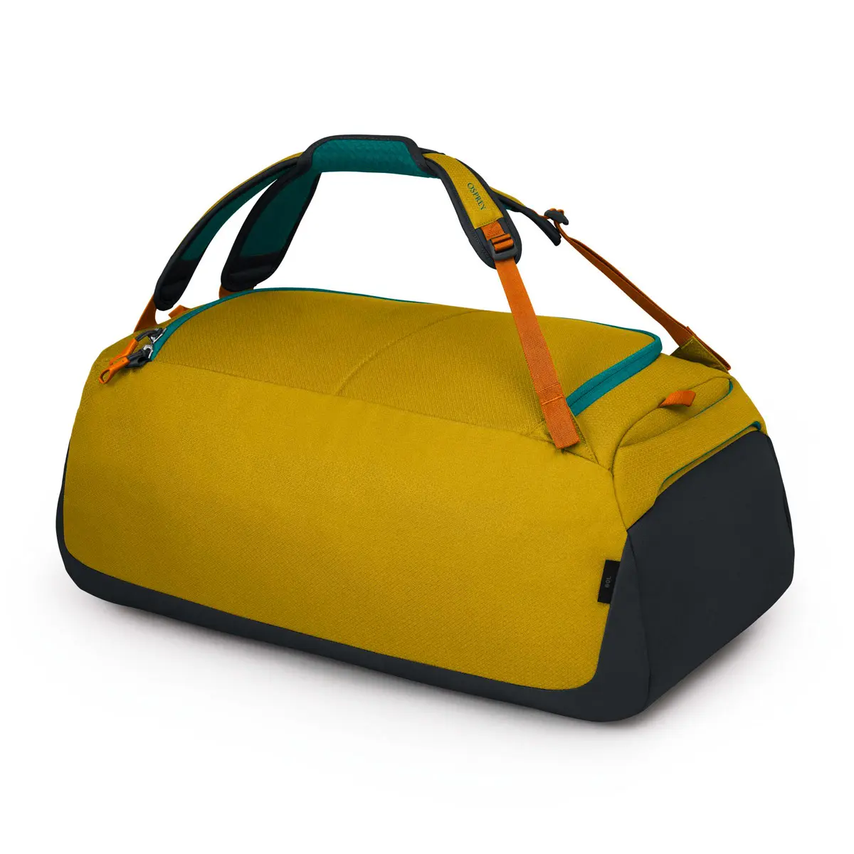 タフなリサイクル素材を使用した背負えるダッフルバッグ。軽量かつシンプルなつくりで、旅行やジム、週末のアウトドアまで幅広く活用できます。60リットルの大容量が、たくさんの荷物が必要な旅行やアウトドアで活躍してくれます。メインの荷室内部には大型のメッシュポケット、外側には2つのジッパーポケットを備えています。上下サイドに内蔵されたパッドには折り目がつけられているため、半分に折畳んでコンパクトに収納することが可能。