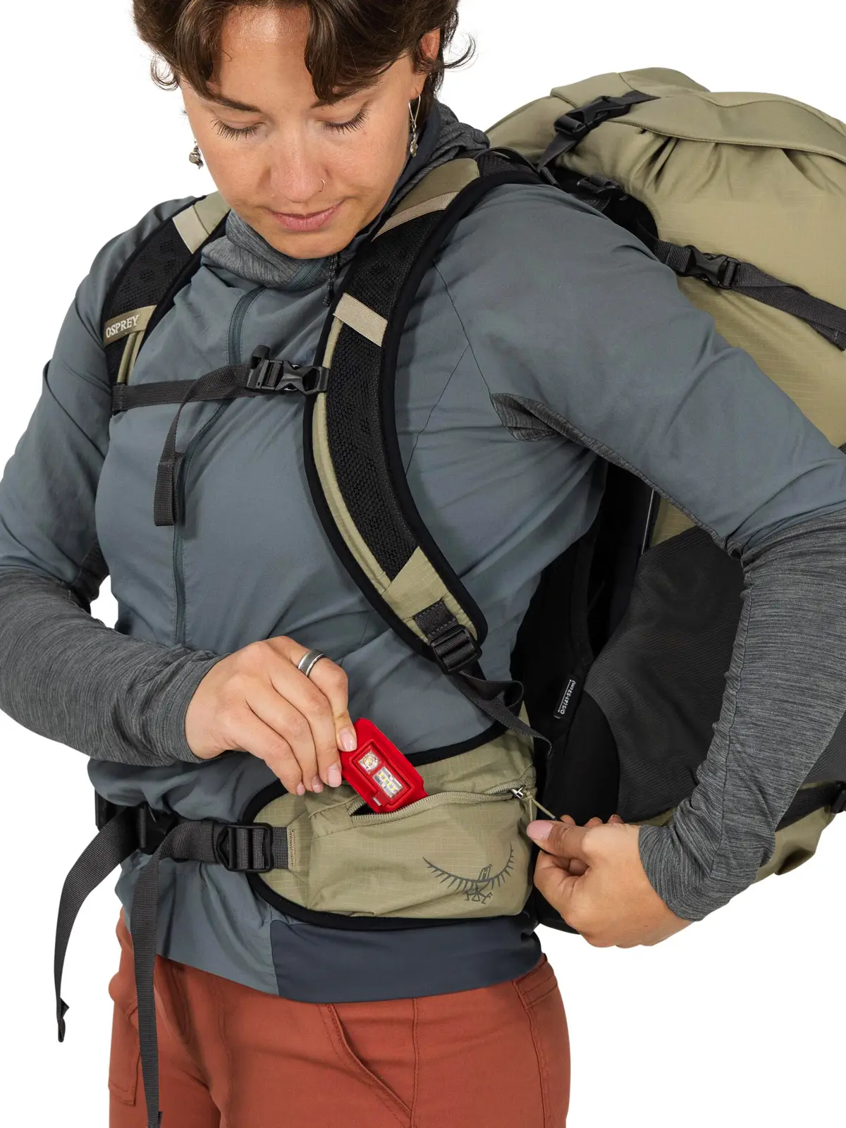 • パッド内蔵ヒップベルト(ジッパーポケット×1、ドロップインポケット×1)