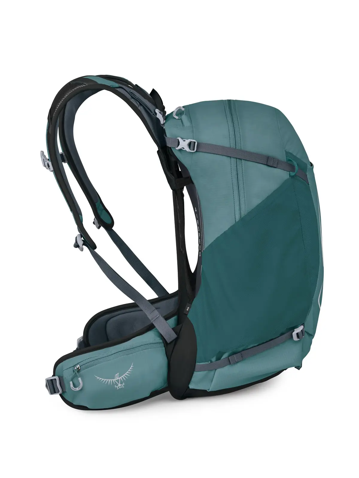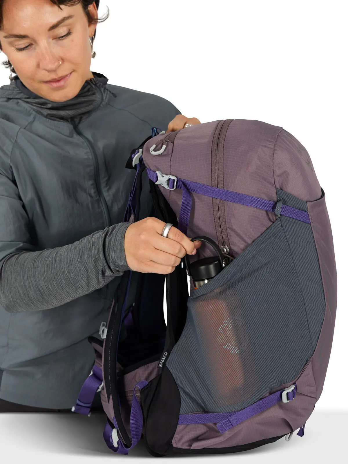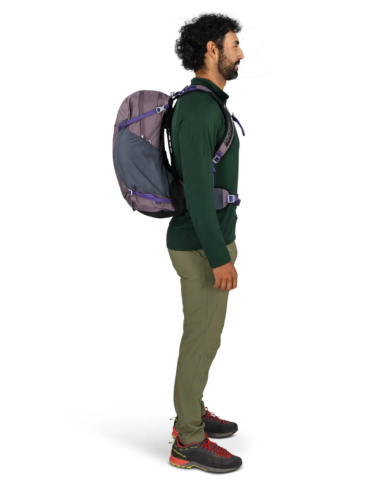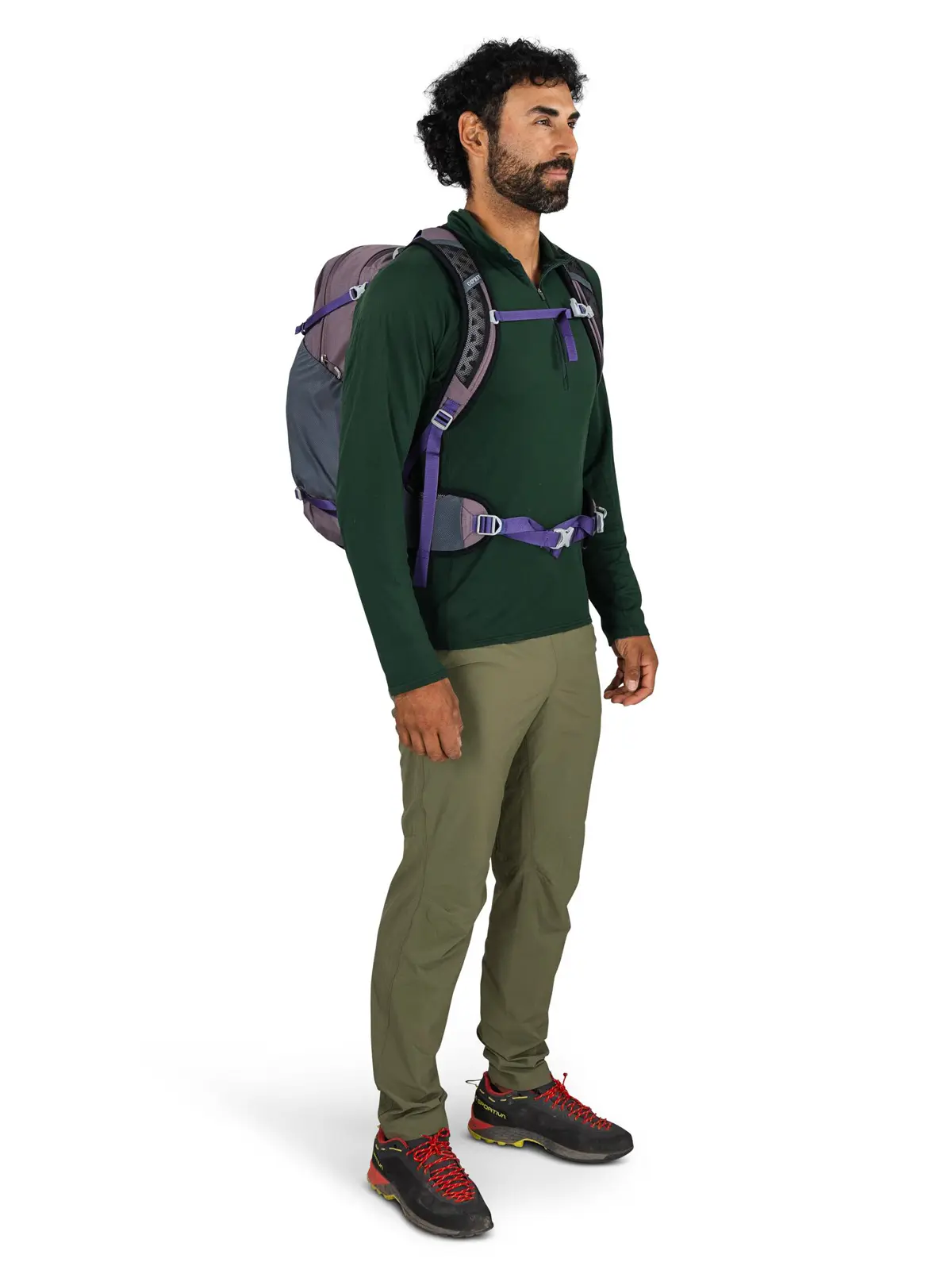 気軽な散策からワンデイハイクまでマルチに活躍するパネルローディング型のハイキングパック。背中から荷重を離しつつ、動きにしなやかに追従するテンションメッシュバックパネルを採用。調整可能なフィット、レインカバー、トップジッパーポケット、パッド内蔵ヒップベルトなど、快適機能を満載。